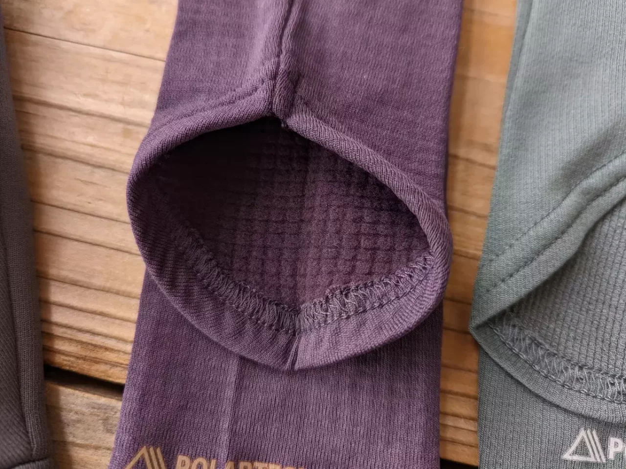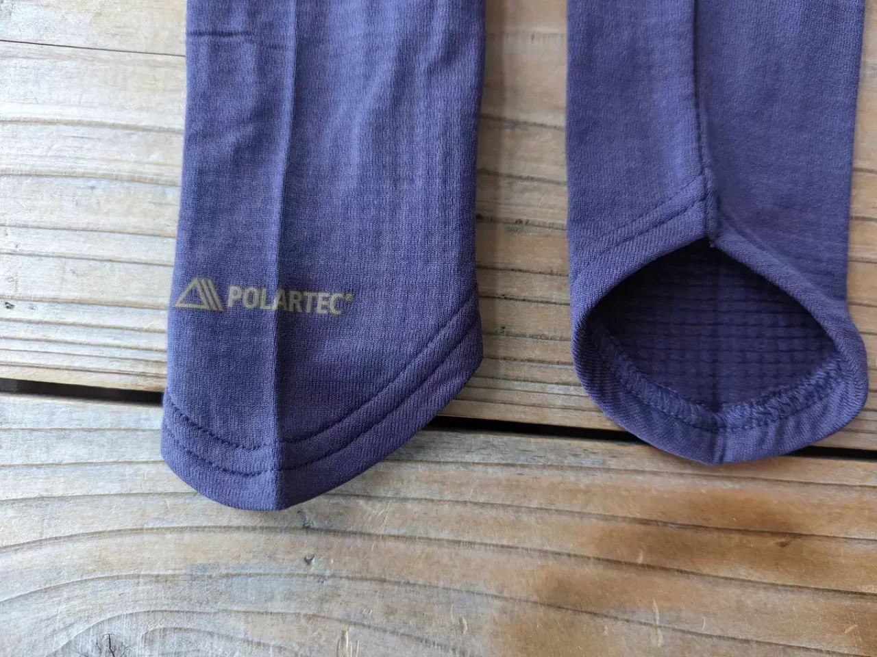 素材の厚みは、それぞれの素材に番手があるため、製品によって異なってきます。今回紹介しているポーラテックのアームカバーについては、パワーグリットの方が厚みがあり保温力に優れています。