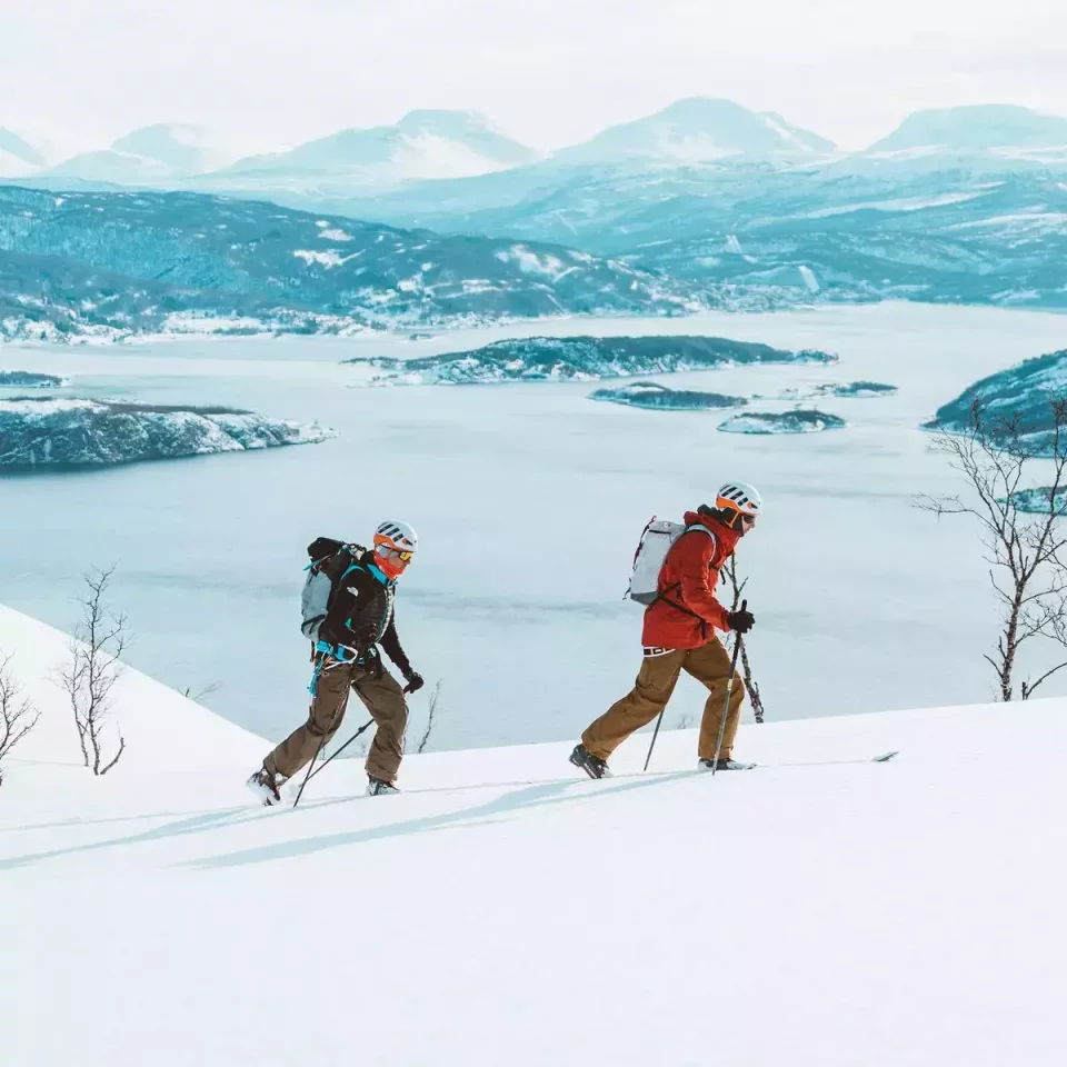 バックカントリースキーを楽しむ人は雪山登山用のハードシェルをスキーでも着用する方も多いと思います。ハードシェルのポケットにはグローブやゴーグル、行動食や水など様々なものをしまっておくことがあるために、ハードシェルは少し大きいサイズを選ぶと良いです。