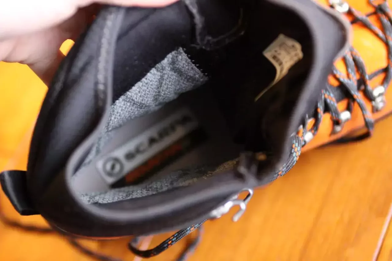 冷たい雪が付着して足元が冷たくならないように、登山靴の内側には断熱保温材がライニングされています。