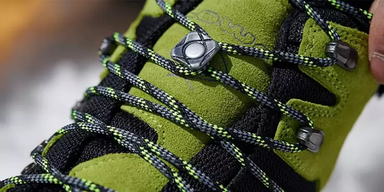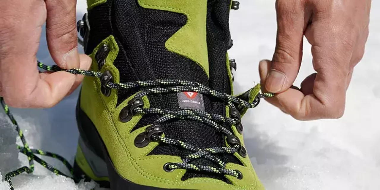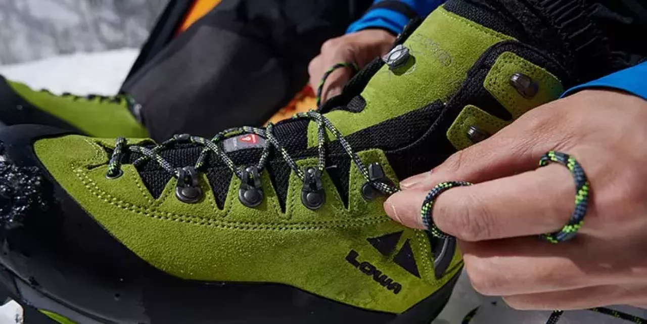 シューレースにはフィット感とワンアクションでロックを解放するウェビングテープを配備し、グローブをした状態でしっかりと登山靴を履くことができるように設計されています。
