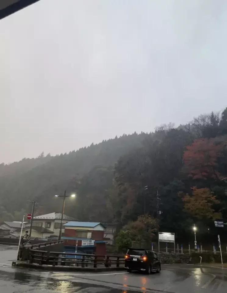 小田急線に乗り換えるあたりから気づき始めたのですが、伊勢原市周辺は明るくなる前から少しだけ雨が降っていました。何日も前から天気予報をチェックしていて、夜中は雨が降るものの8時ごろには曇りから晴れに変わる、との予報でした。しかし、バスに乗っても雨足は強まるばかり。