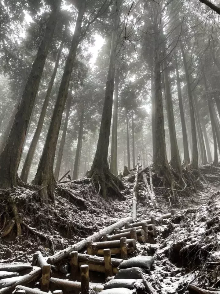 登りでは日が昇りはじめたばかりで雪が解けていなかったので滑ることもなく、安全に登頂できました。しかし、頂上は風もあり極寒。雨や雪は降っていなかったものの、曇っていて頂上からの景色も見えませんでした。