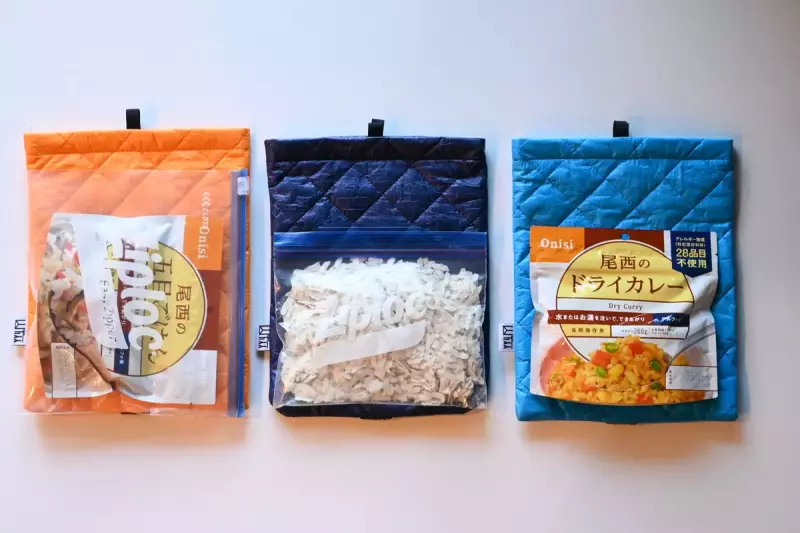 同じ素材のタイベック保温バッグは横19㎝×高さ24㎝で少し大きく作られているので、ジップロックMに入れた冷凍食品やお湯を入れた後の尾西のアルファ米やモンベルのリゾッタシリーズを入れることで温かな状態を保ちながら食べることができます。