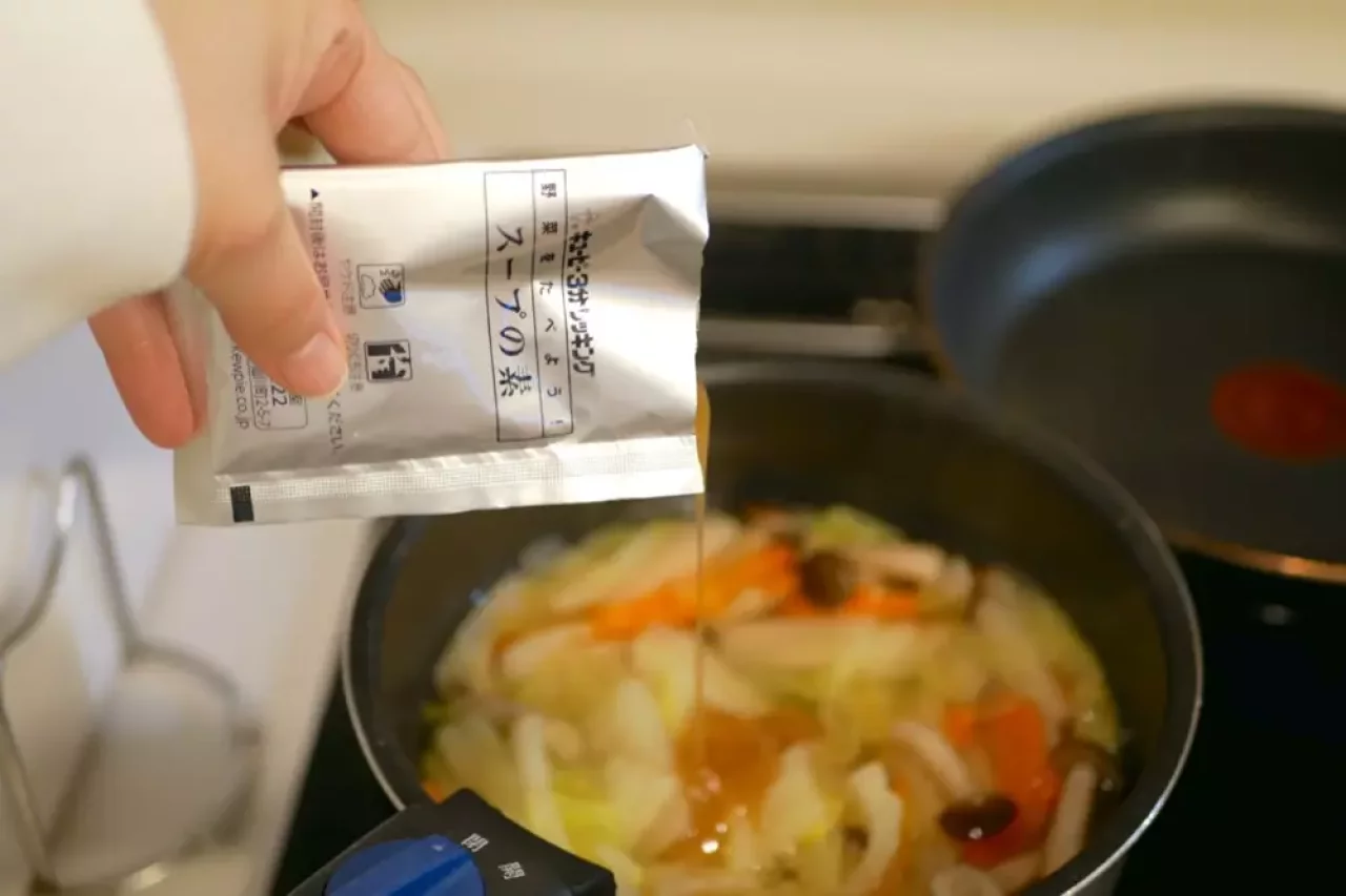 - スープの素を入れる