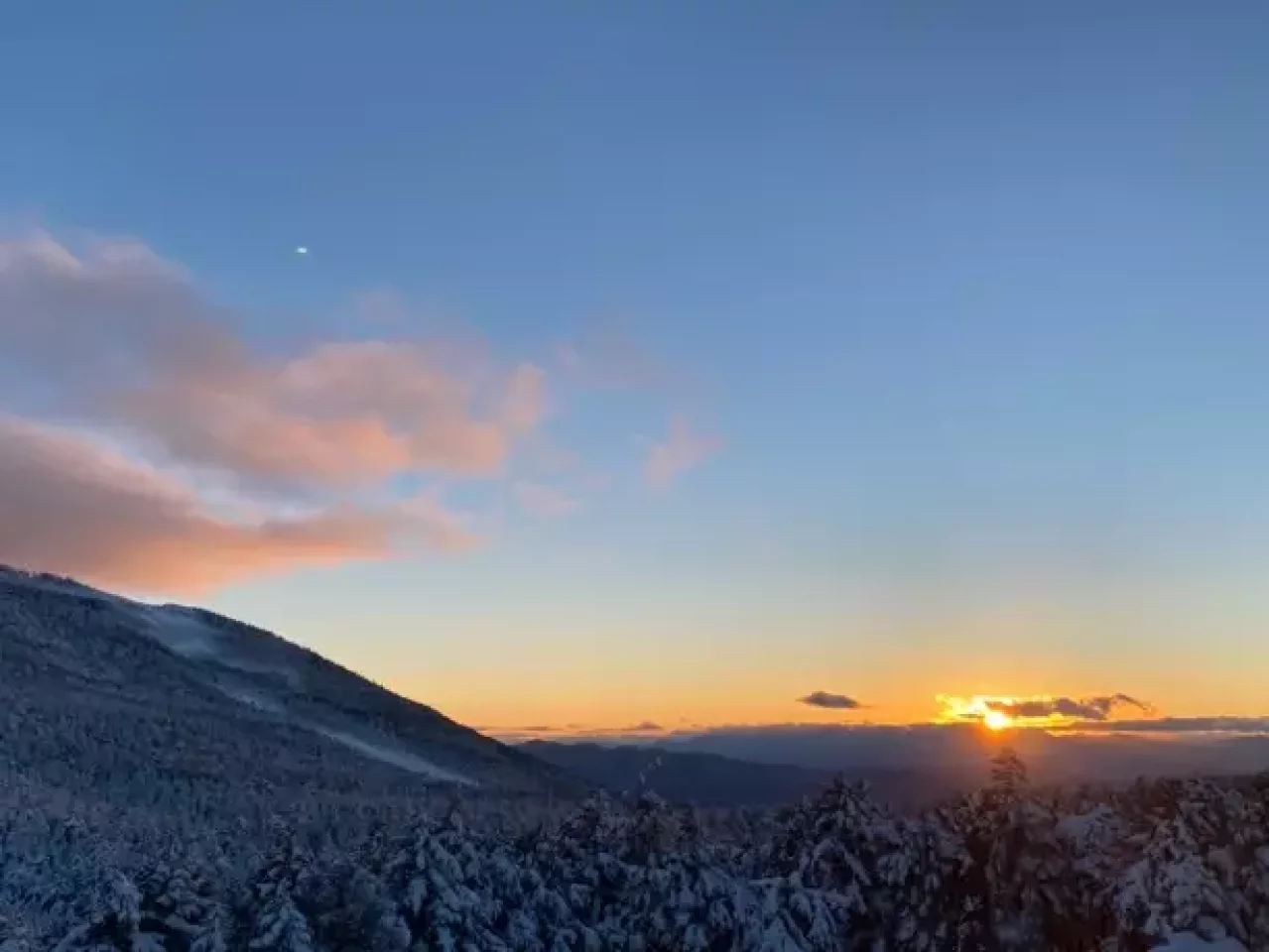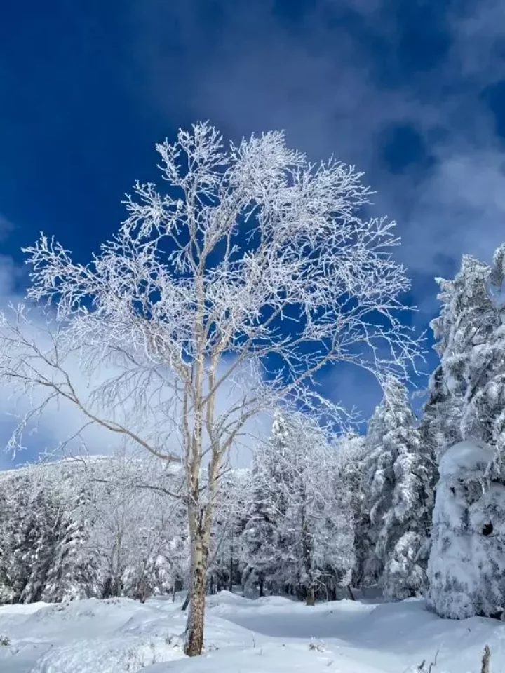 翌日は朝食後に展望台からの日の出を眺めてから白駒池へと下る。急な下りとなるので、登山道の状況によってはアイゼンを装着した方が安心して歩ける。白駒池が完全に凍結していればその上を歩くことができ、スノーシューがあればより楽しい。ただし、凍結状態には十分な注意が必要だ。凍った池の上を歩く体験はなかなかできないので、十分満喫してから麦草峠へと進む。