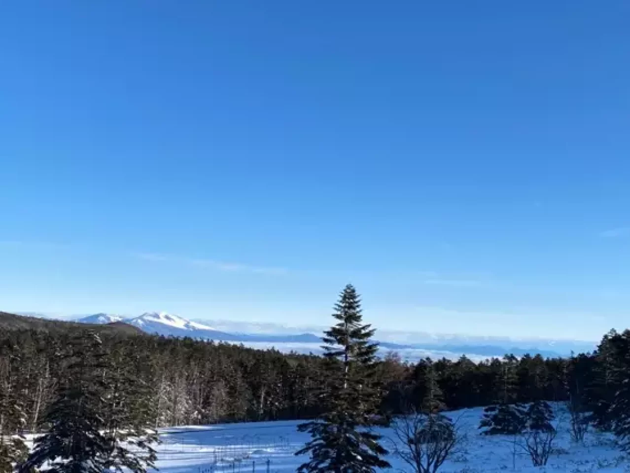 全体としてはやや下り基調の樹林帯歩きであり、樹氷を纏った木や遠くに真っ白な中央アルプスを眺めながら雪道を楽しもう。オトギリ平を過ぎると冬季通行止めのメルヘン街道に出るので麦草峠までは車道歩きとなる。