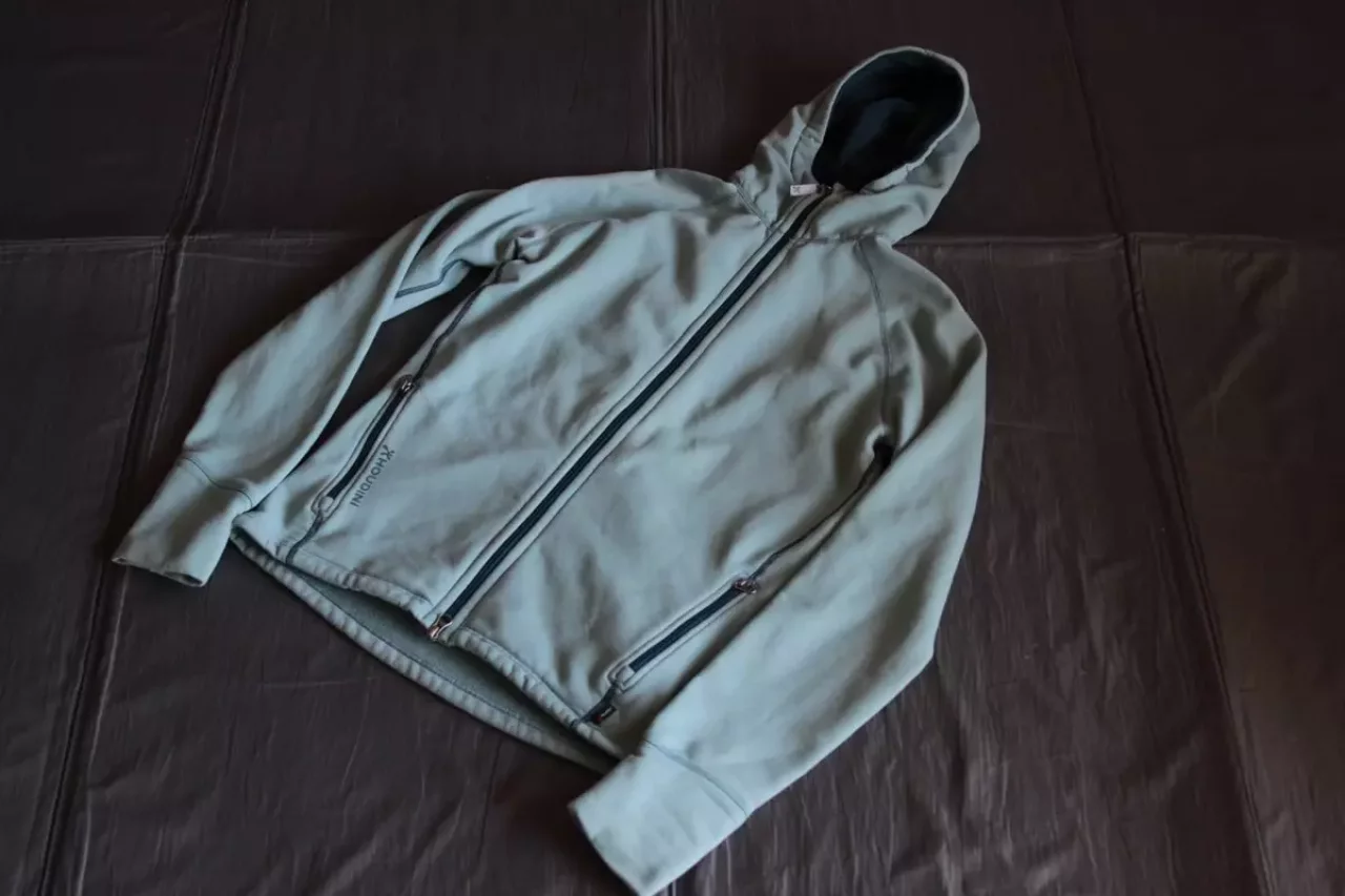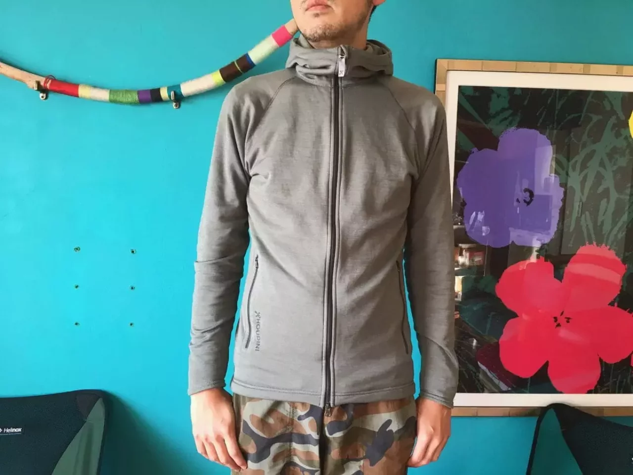 Houdiniの定番フリースとして位置づけられるパワーフーディは、上で紹介したアウトライトフーディより厚手で保温力に優れた着心地の良いフリースです。アウトライトフーディにはないサムホールで冷気の侵入を防ぎ、フリースとしては非常に防寒性能に優れています。ポーラテックパワープロによる耐久性で単体での使用にも適しています。