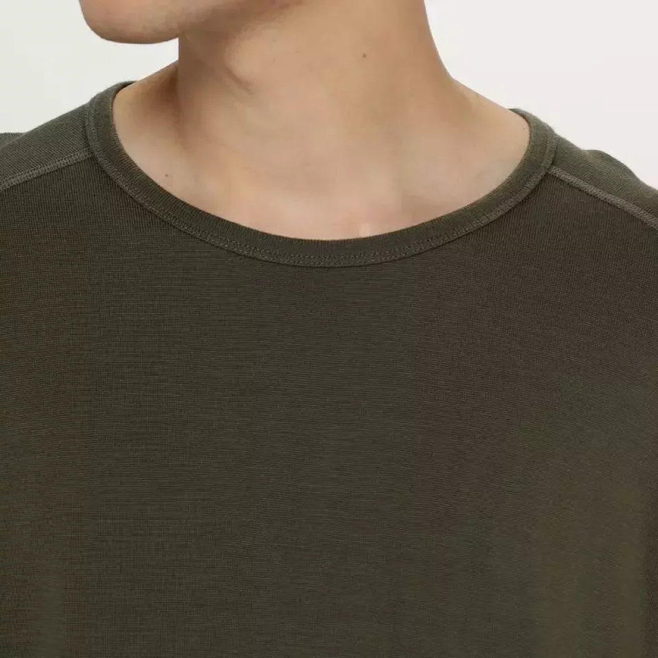 ㎡あたりの生地の厚みが260gと厚みがあり、メリノウール100%で保温力を高めたロングスリーブタイプのベースレイヤーです。