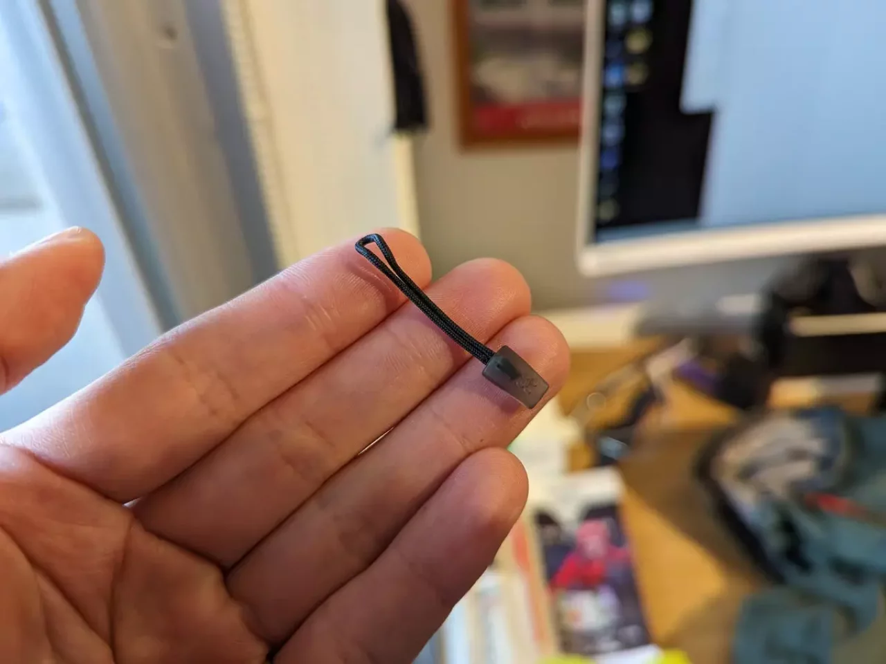 おすすめの方法は、細引きでジッパータブを作ったら、コブを2つ作ることです。こうすると1つのコブや先端タブ1つのジッパータブと比較して、滑りが全く異なり、グローブをした状態でも開閉しやすくなります。