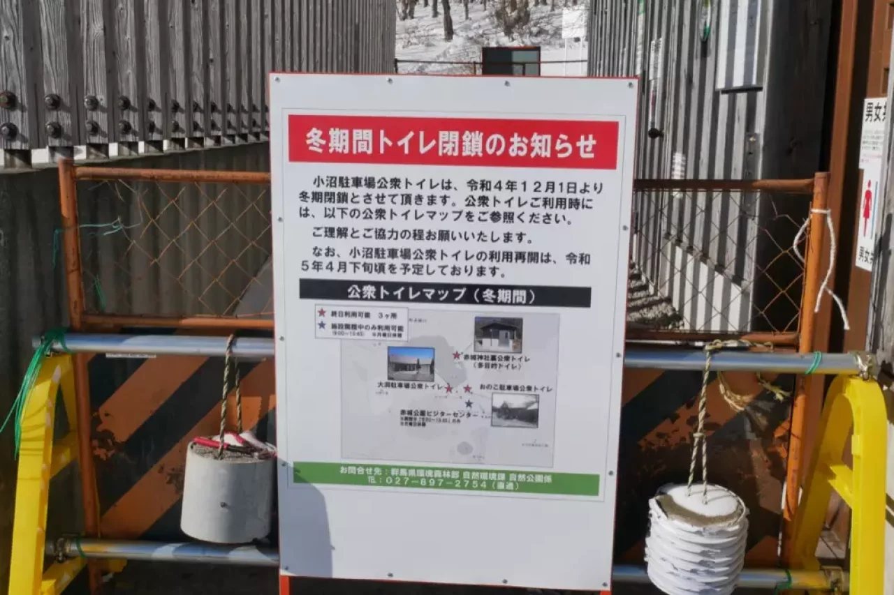 県立赤城公園小沼駐車場のトイレは、冬季閉鎖していたので要注意です!