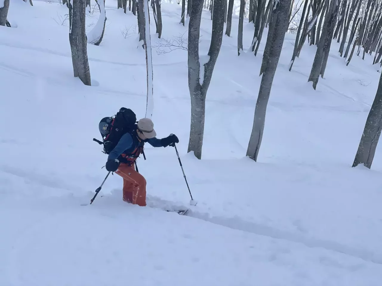 今年2年目となるテレマークスキー。1年目はテレマークで連続ターンができたことに心が踊り、シールをスキーに取り付けて雪の上を歩けることに驚き、誰もいない雪山の景色の素晴らしさと怖さの中、スキーをして雪まみれになっては笑ったり悔しがったりしていました。