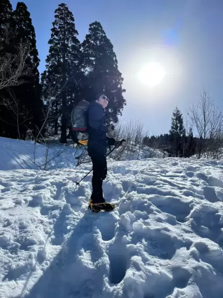 初めにそこそこの登りを体感し、アイゼンの使い方、安心感を感じてもらう。