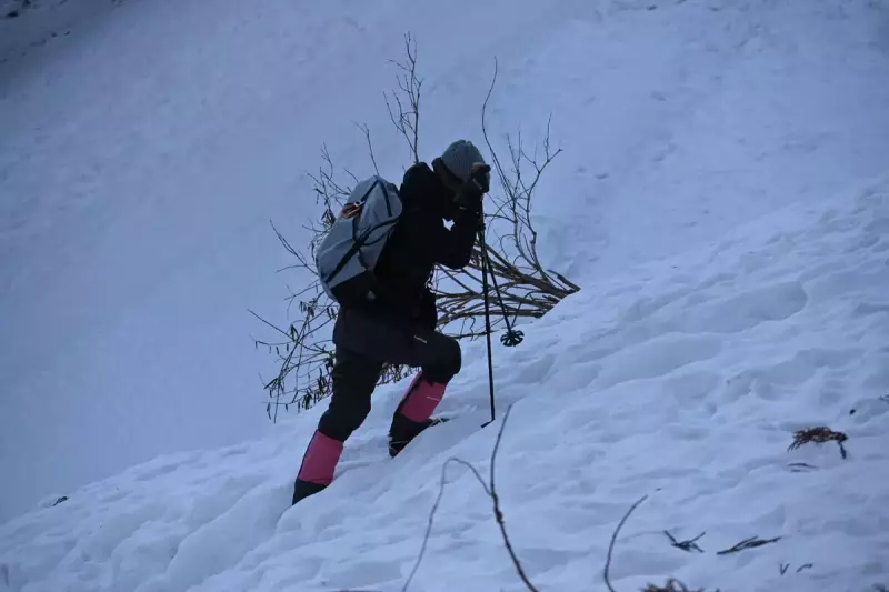 フラットフッキング、キックステップ、アイゼンで引っ掻けないように…軽アイゼンと違う感覚を。