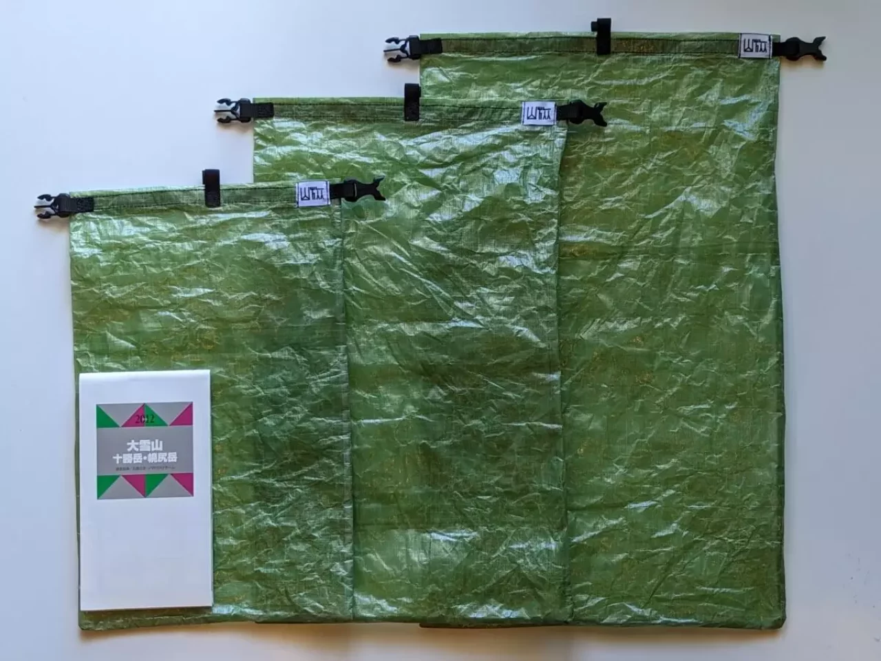 ダイニーマを使用したスタッフバッグを使用すれば、中のものを濡らさないだけでなく、中身を外側から確認することができ、装備重量全体の軽量化にもなり、一度購入すれば長い期間使用し続けることができます。