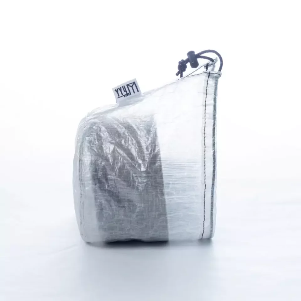 2種類の大きさがあり、軽量なクッカー用スタッフバッグとして仕上げた、400は0.4L、500は0.5Lほどの大きさです。ダイニーマで作成しているため、耐久性に優れており非常に軽量です。