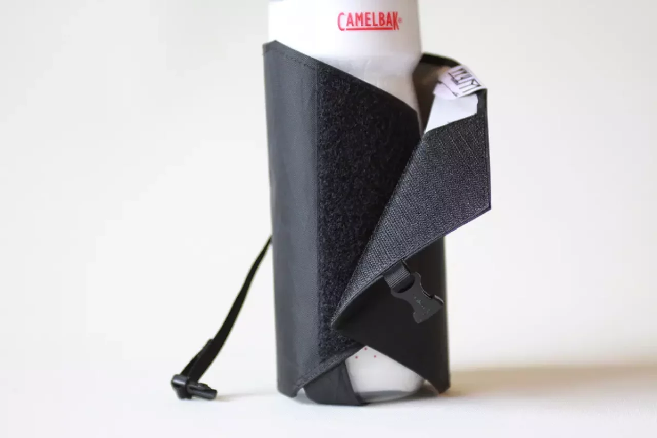 ザックのショルダーハーネスに取り付けることができるボトルケースです。様々な形状と大きさのショルダーハーネスに取り付けることができます。