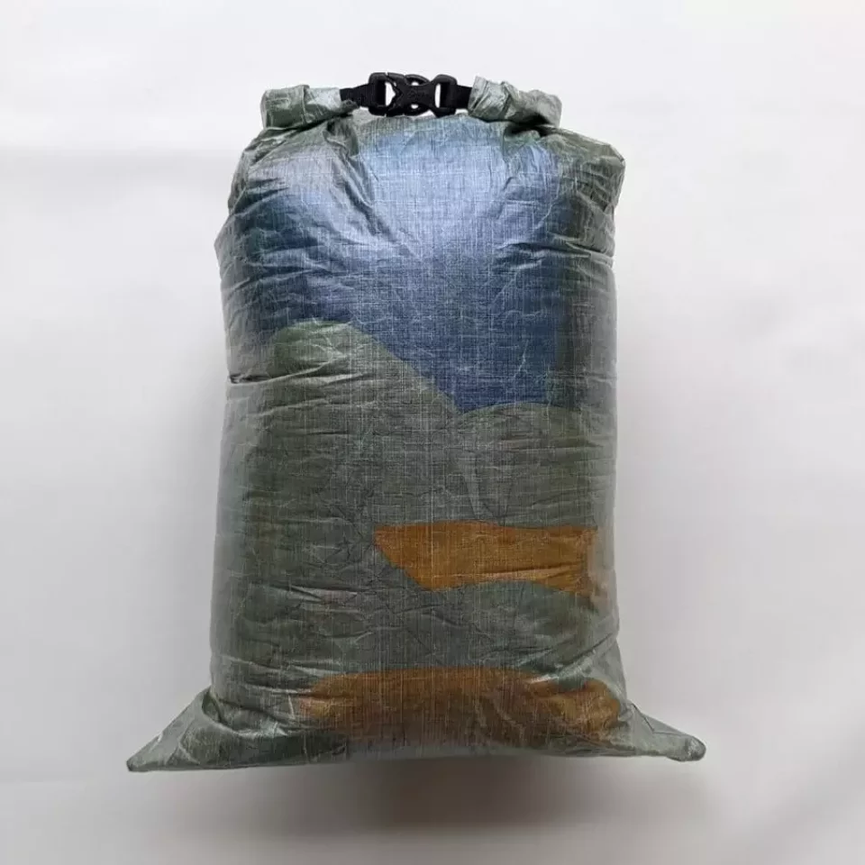 高い耐久性と軽量なダイニーマは半透明素材なので中身の識別が可能なのも特徴です。登山において軽量化をこだわる方におすすめのドライバックです。
