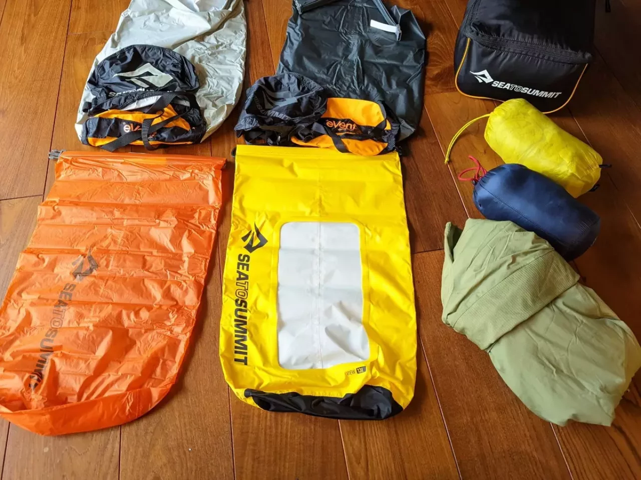 登山ではダウンジャケットやダウンシュラフなど濡れては困るものを汗や雨から守ります。また結露や雨などで濡れたテントをザックに収納する際、ザックの中にある他の物を濡らさないようにするために役立ちます。