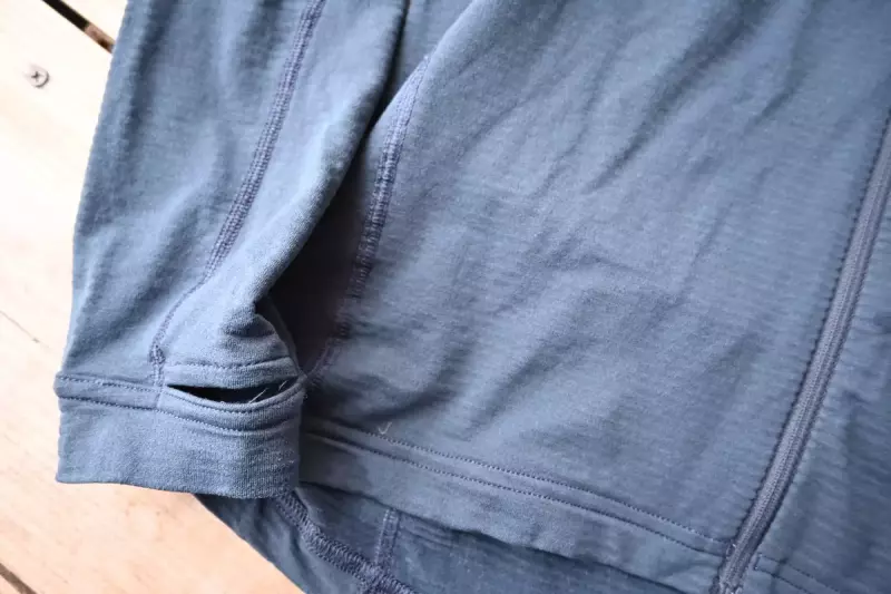 手が冷たくなるシーンでサムホールが重宝します。手が冷たくなる時に重視しているのが手首を温めることです。手首は静脈が通っている部分が薄い皮膚なのでこの部分を温めることで血液を冷やさず、結果手を温めることに繋がります。