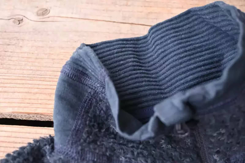 ポーラテックのパワードライの中でも凹凸のあるグリッドフリースが肌面側にあり、効率的に汗を吸い上げ、素早い拡散性能でボディーを常にドライに保ちます。そしてストレッチ性もあるので動きを妨げません。