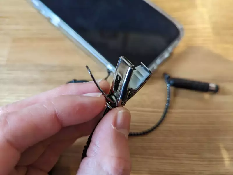 以下の要領でタッチペンをスマホケースに取り付けます。