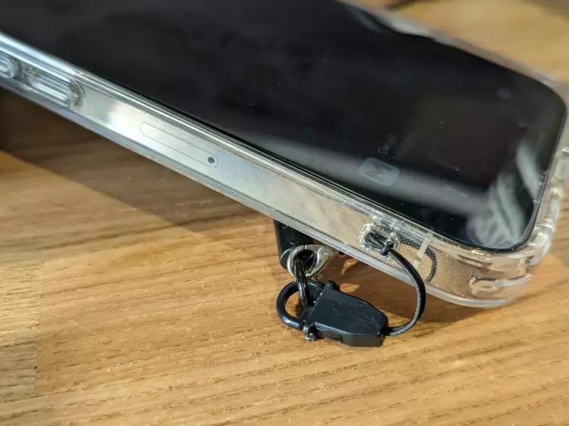防水ケースの上部にはストラップホールが設けられており、ここに付属のストラップを取り付ければ首にかけておくことができます。
