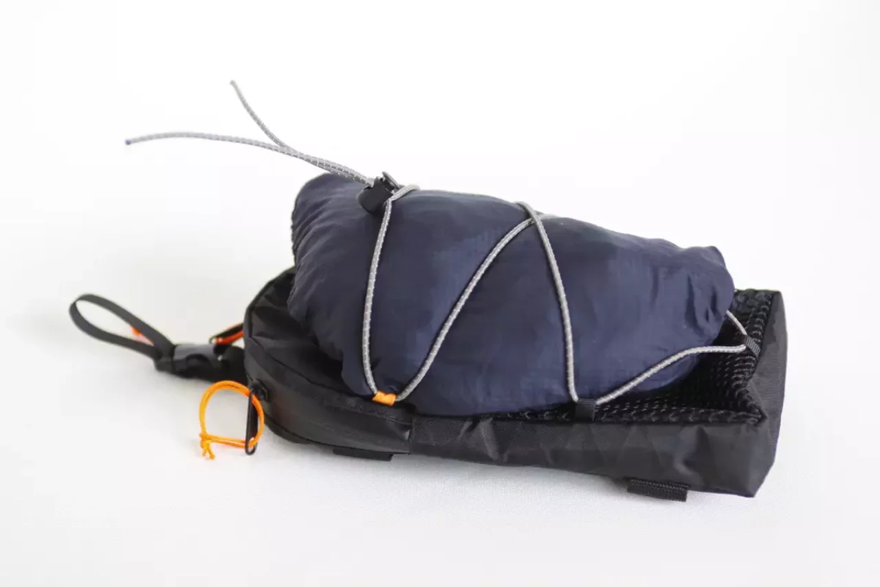 またオプションのバンジーコード&コードロック(320円)を購入し5箇所のループに通すことで紙地図やウィンドブレーカーなどを固定することができます。