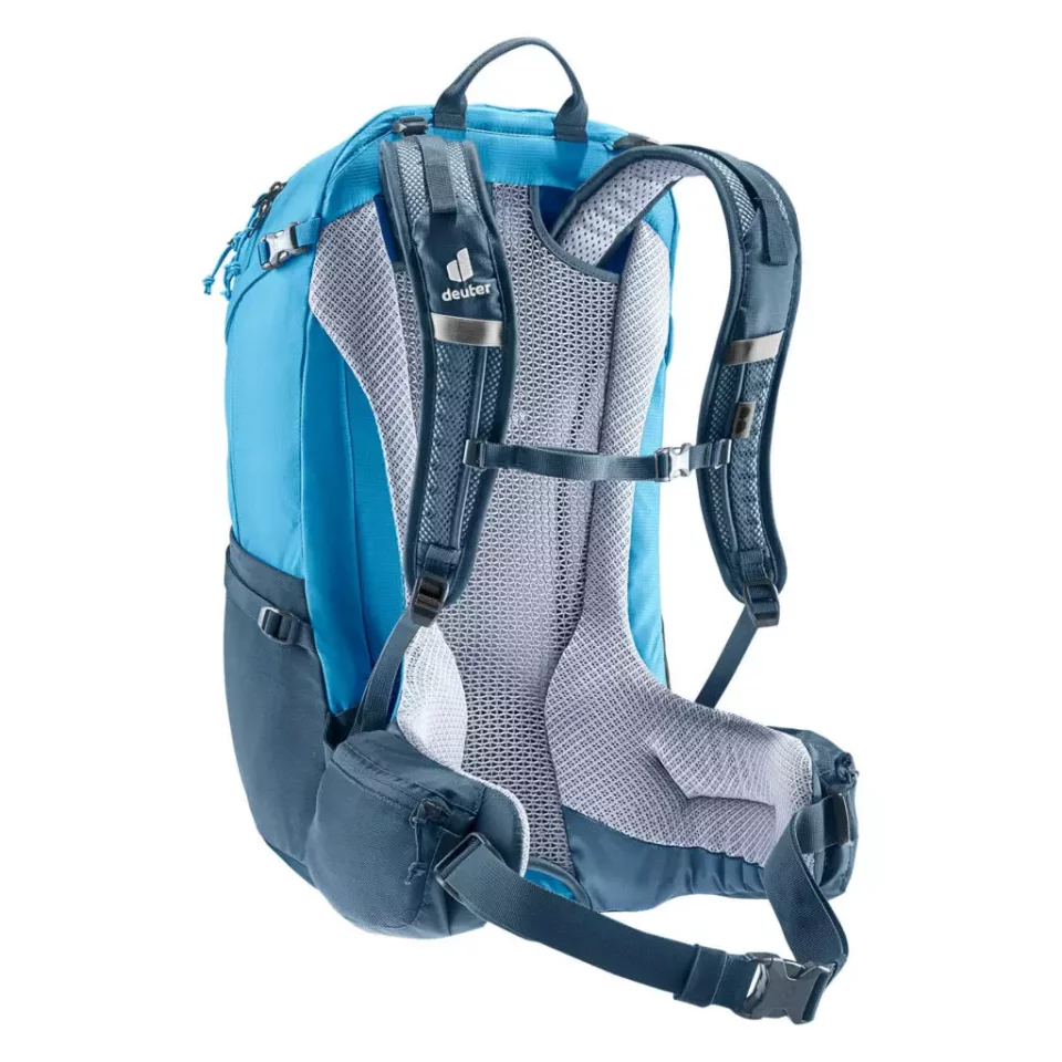 背中とザックの間にメッシュパネルで空間を設けた日帰り登山用ザックです。肩幅やショルダーアングルに応じて柔軟に変形するショルダーストラップシステムが設けられ、軽量で剛性の高いスチール製の内臓フレームによる背負い心地の良さは秀逸です。使いやすいポケットの配置や小物などを整理して収納できるオーガナイザーはドイターのザックの素晴らしさを体感することができます。