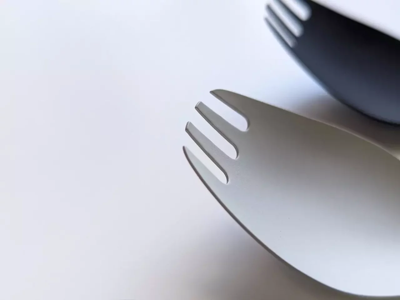 最も軽量なカトラリーに挑戦したアルマイト加工済みのアルミニウムを使った口当たりが優しい先割れスプーンです。熱いスープでカトラリーが熱くなることはなく安心して使用することができます。指を使った時の持ちやすさ、先割れ部分で麺を絡めることができる優れたデザイン、しっかりとお米やスープをすくえる形状を採用しています。