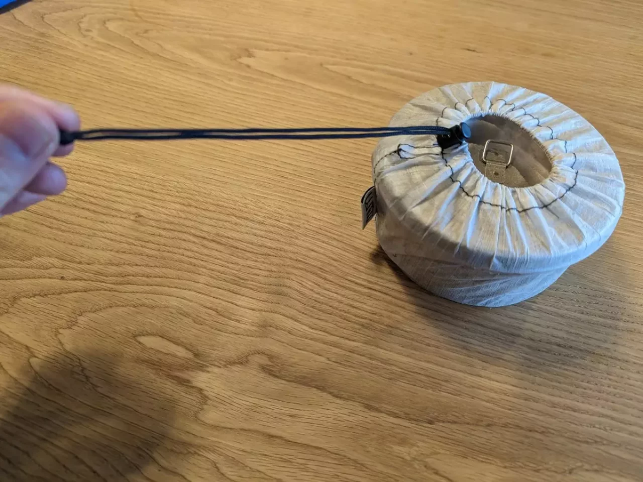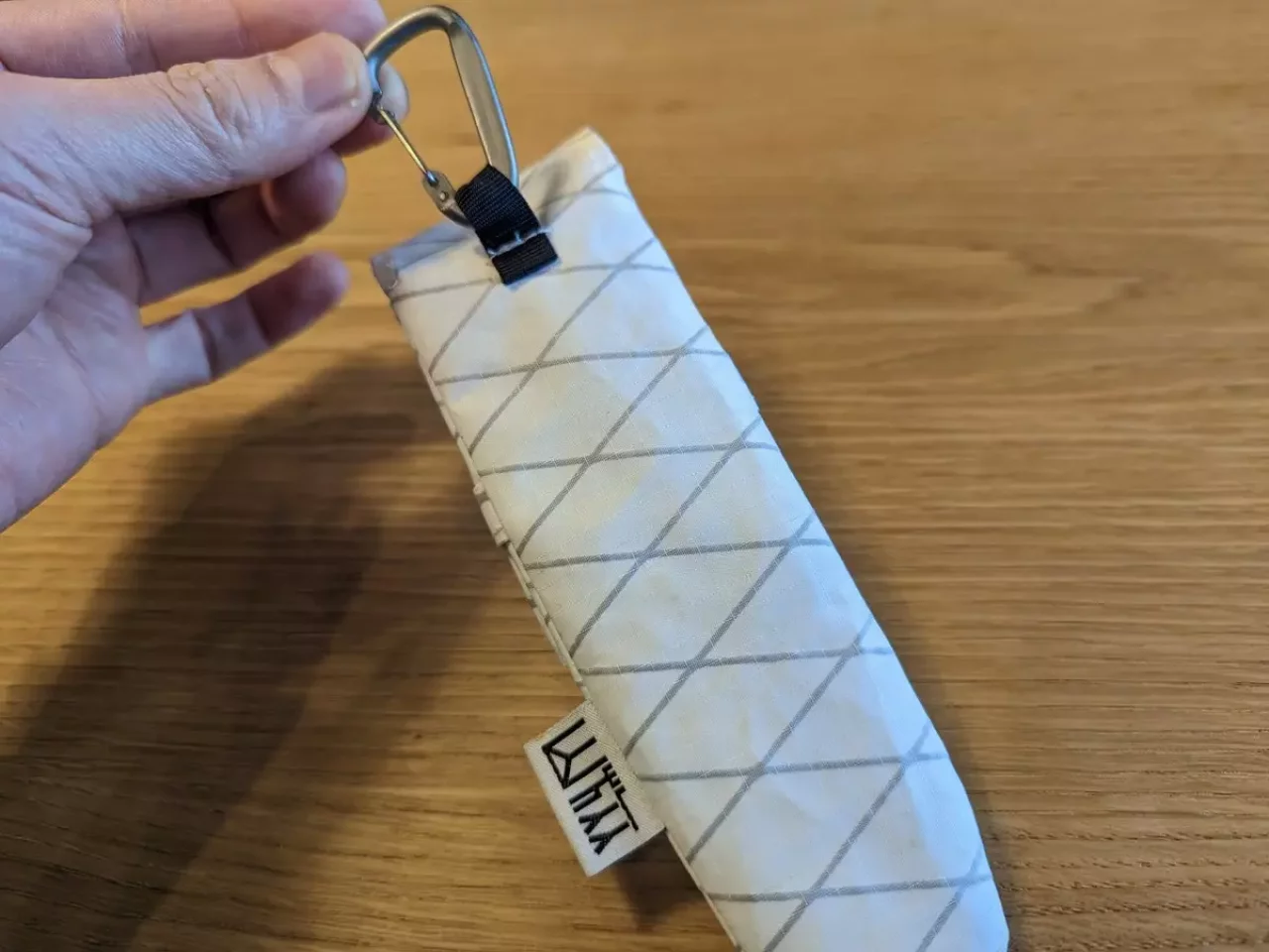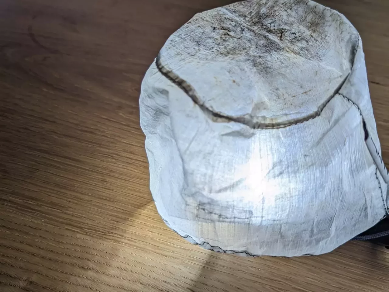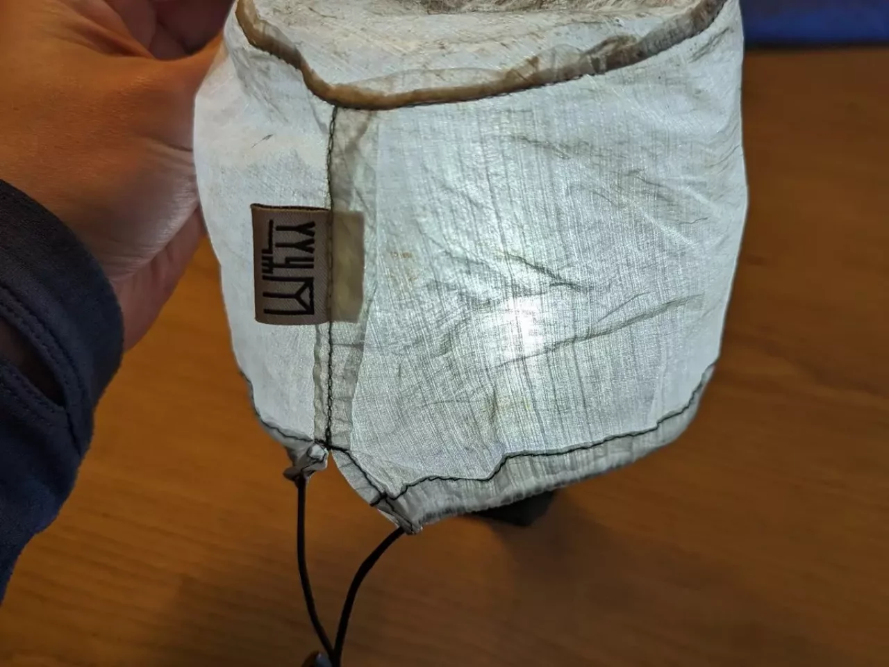 ダイニーマ1.0という厚みは引裂き強度に優れているだけでなく明かりを拡散するのに適した厚みで、程よい張りがあるのでヘッドライトを被せた時に形を維持する特徴があります。現在最も軽量な登山用ランタン「HEXARUL3」がバッテリー込みで63gなのですが、この道具を省くことができます。
