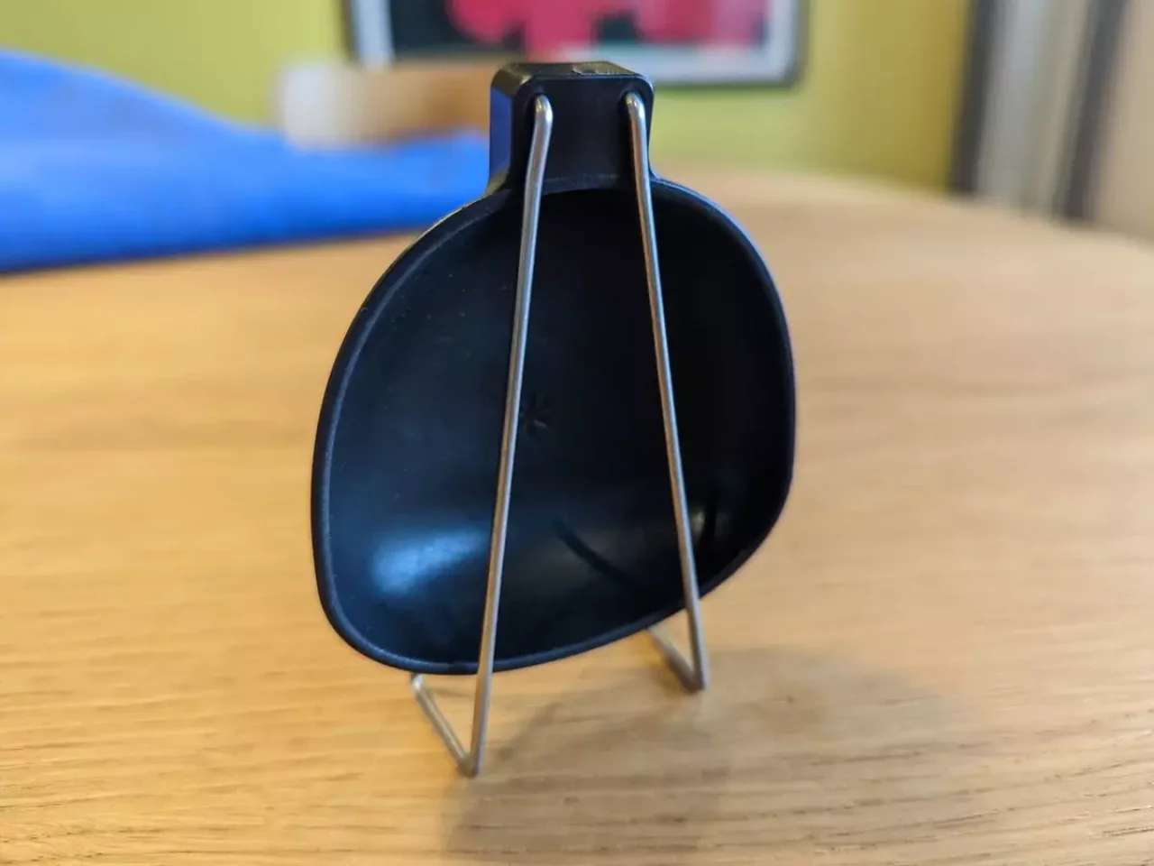 大きなクッカーで作った鍋料理や汁物を各自のマグカップに注ぐのに欠かせないのがスノーピークのヤエンレードルツグです。重量25gで使いやすいデザインを採用しています。ハンドルにはワイヤー素材を用いており、ハンドルを畳むことでコンパクトにして持ち歩くことができます。また畳んだ時に持ち手部分が自立するように設計されているので汚さずに置いておけます。
