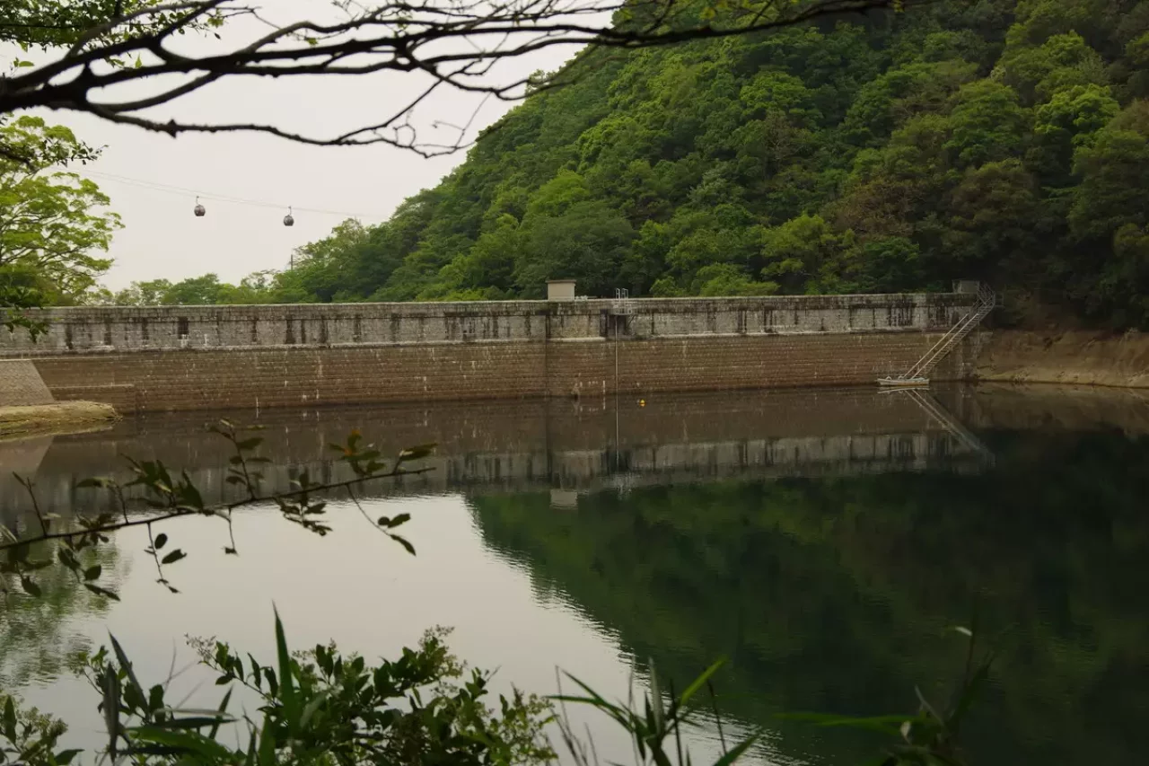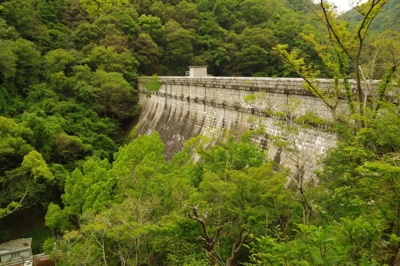 こちらは石井ダムとは違い、古いダム。しかも並の古さではありません。日本最古の重力式コンクリートダムで国の重要文化財にも指定されています。竣工はなんと1900年。そこから長らく大都市・神戸の水源を守り続けてきた歴史を感じさせる風格のある佇まいです。