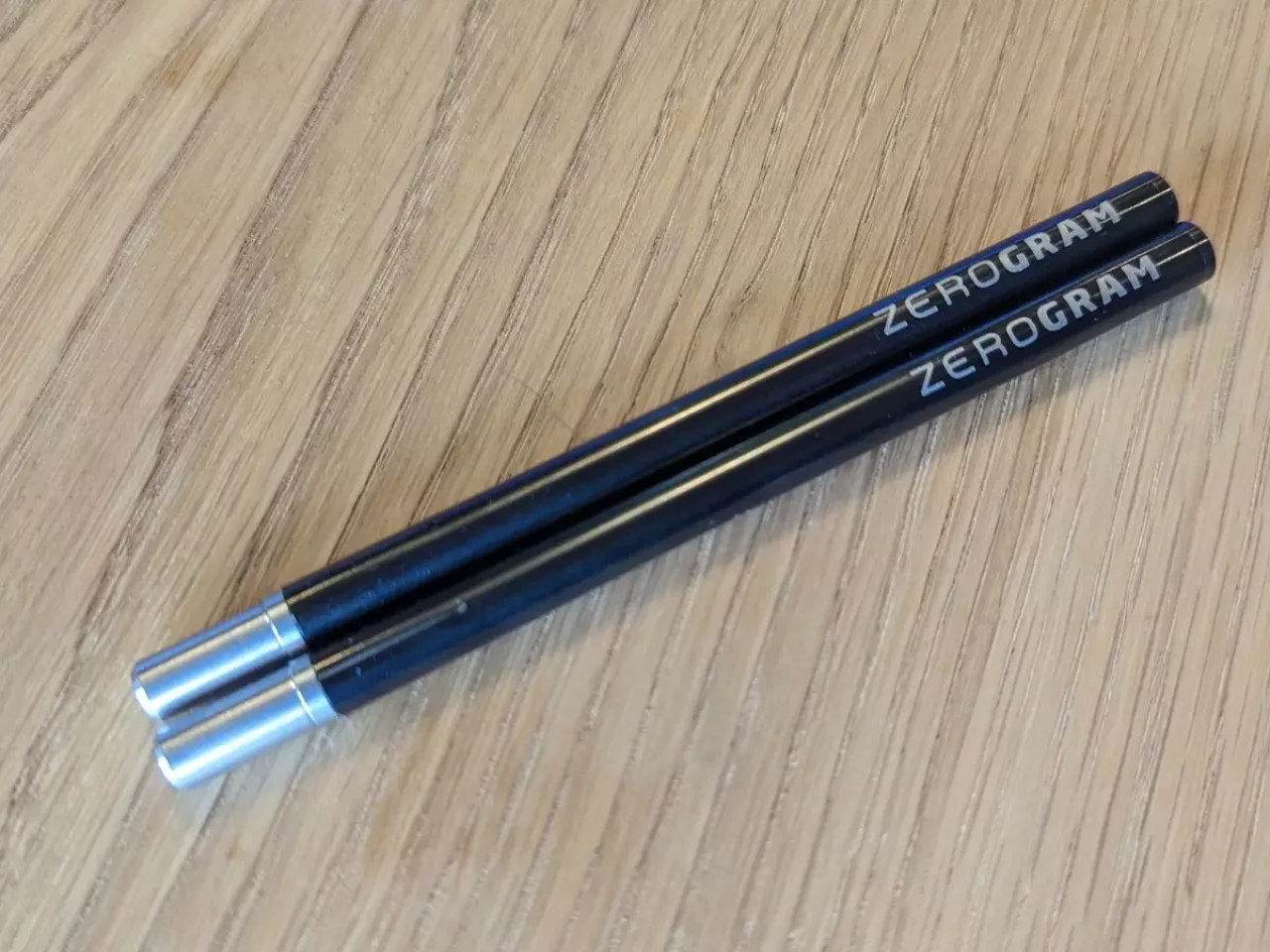 ゼログラムのビストロカトラリーセットは折りたたみ式のスプーンとジョイント式のお箸のセットです。スプーンは折りたたむと9.2cm、お箸は12cmの長さでコンパクトにして持ち歩くことができます。