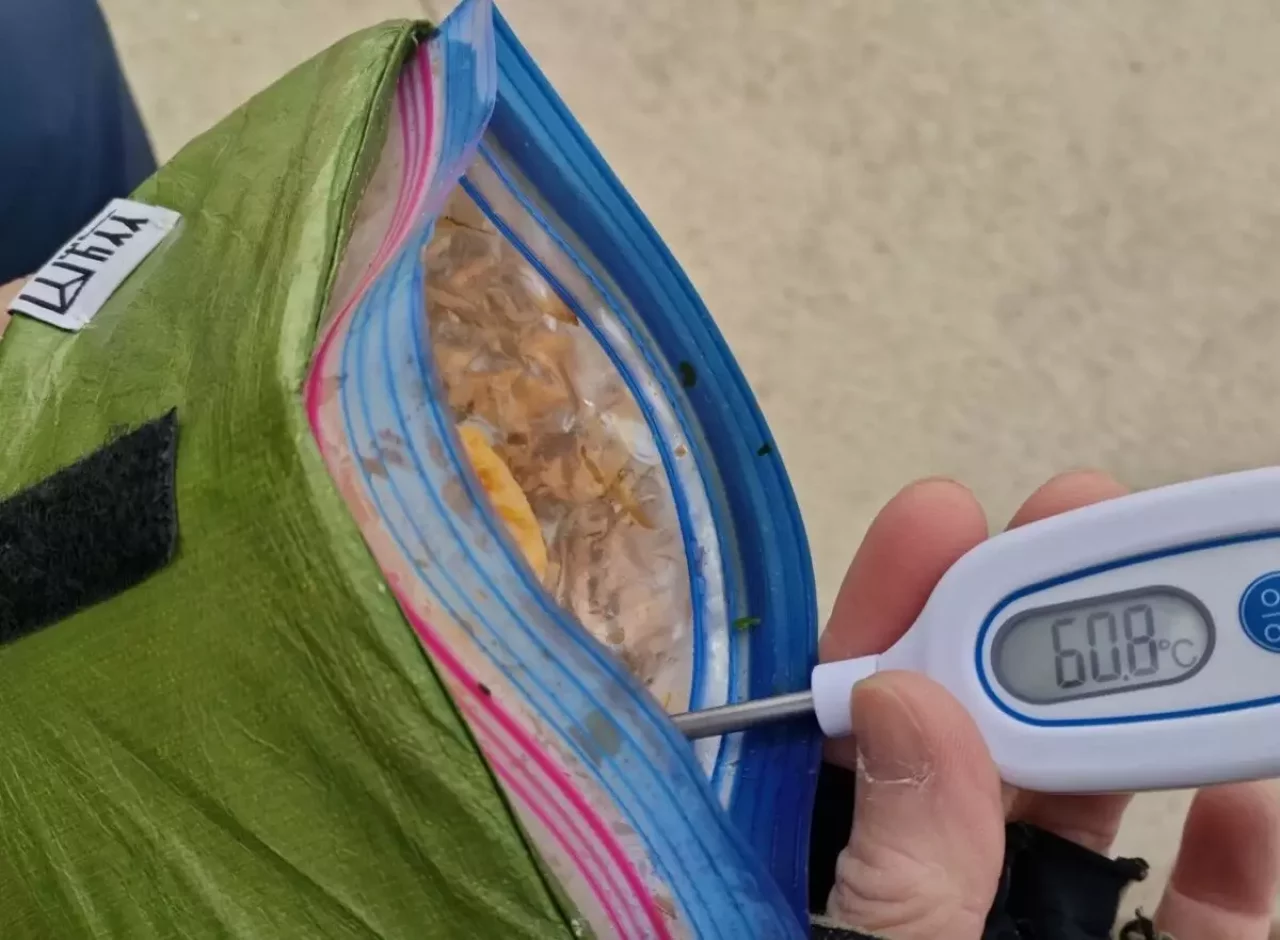 ちなみに完成直後は60度ありました。うどんを一番美味しく食べられる温度は65度らしいので、なかなか近い温度です!外気温が寒かったにしては優秀な結果が出ました!
