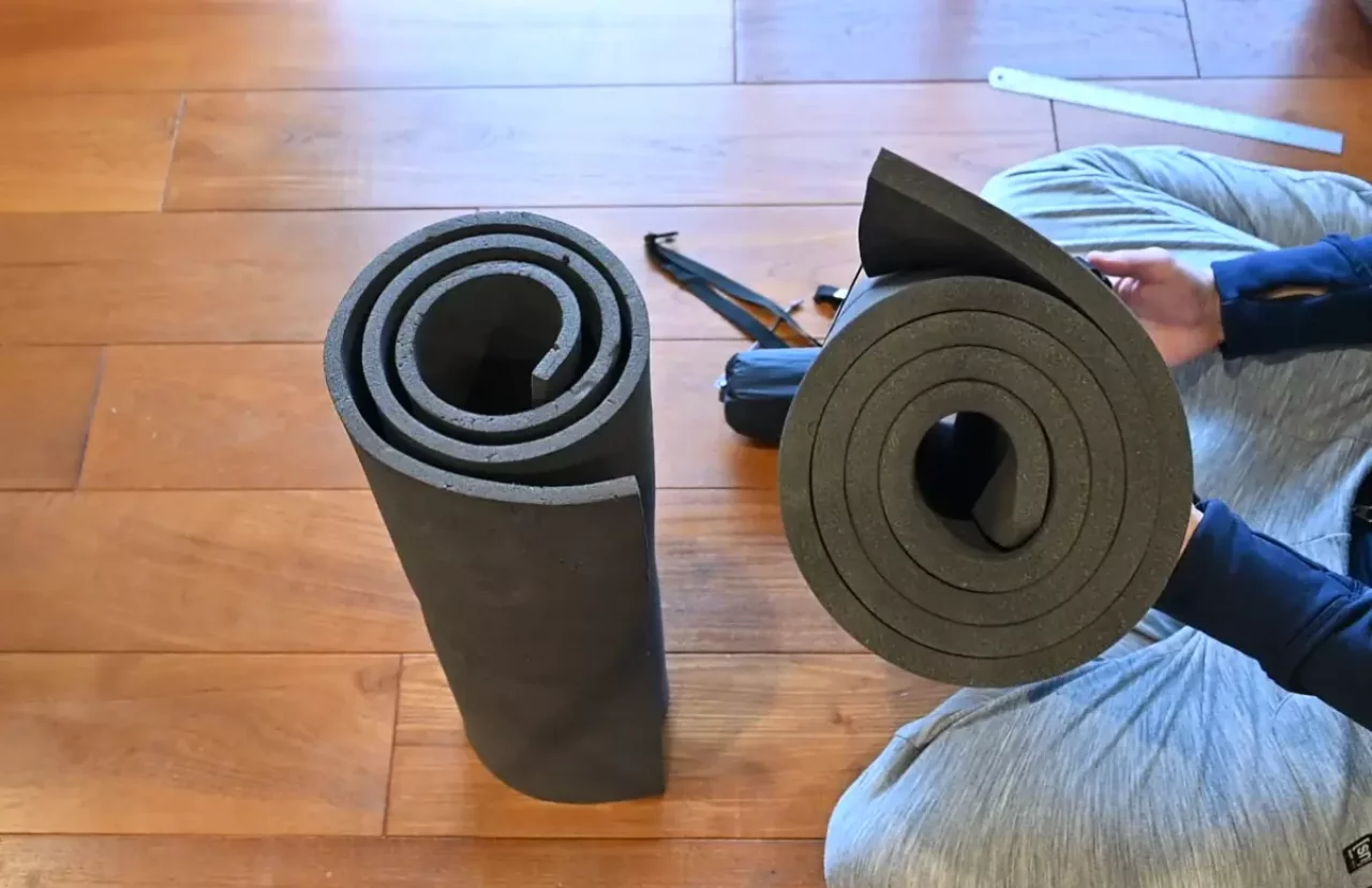 例えば200cmの長さを購入して180cmにカットしたら20×50cmの背面パッドを作ることができます。背面パッドはエアマットを使う時の座布団代わりにしたり、少し斜めになったテント場で就寝するときに低い側にパッドを敷くことで、体の傾きを抑制するなど、様々な使い方ができます。