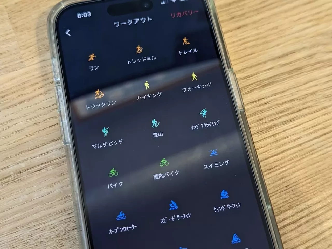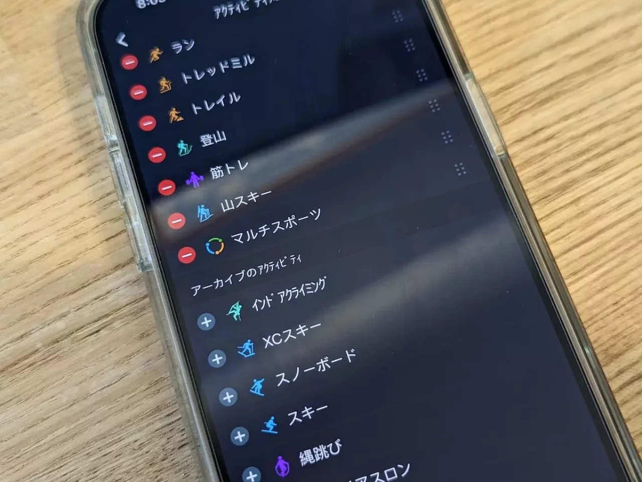 購入したばかりのCOROS VERTIX2はメニューがフルな状態で表示されています。例えばアクティビティメニューには縄跳び、トライアスロン、ウィンドサーフィン、スピードサーフィンなどなど登山での使用では使わないものがあるので、これらのメニューをオフにしておくことでメニュー選択が楽になります。