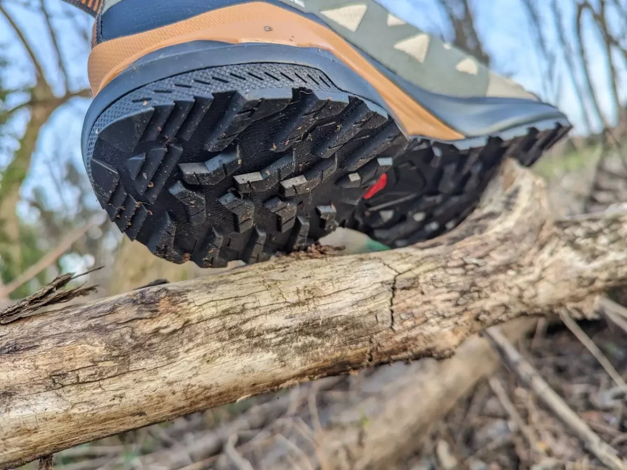 特に雨が降った登山道で、濡れた木の根や幹に足を置いた時のグリップ力は素晴らしく、安定した歩行をサポートしてくれます。