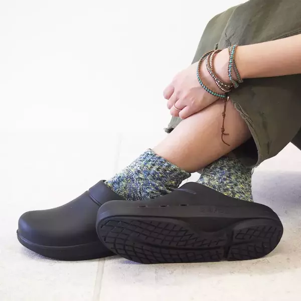 医療従事向けのリカバリーサンダルとして誕生したしっかりと足をホールドする特徴あるデザインのサンダルです。通気性にも優れているため夏は素足で、冬はソックスと合わせて1年中活躍します。かかとをホールドするストラップは取り外しすることもでき汎用性にも優れています。