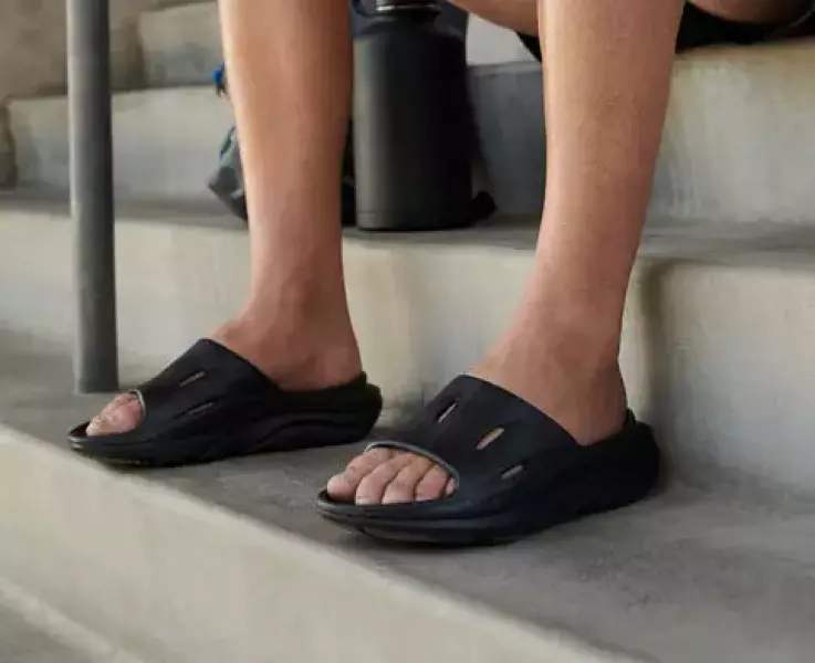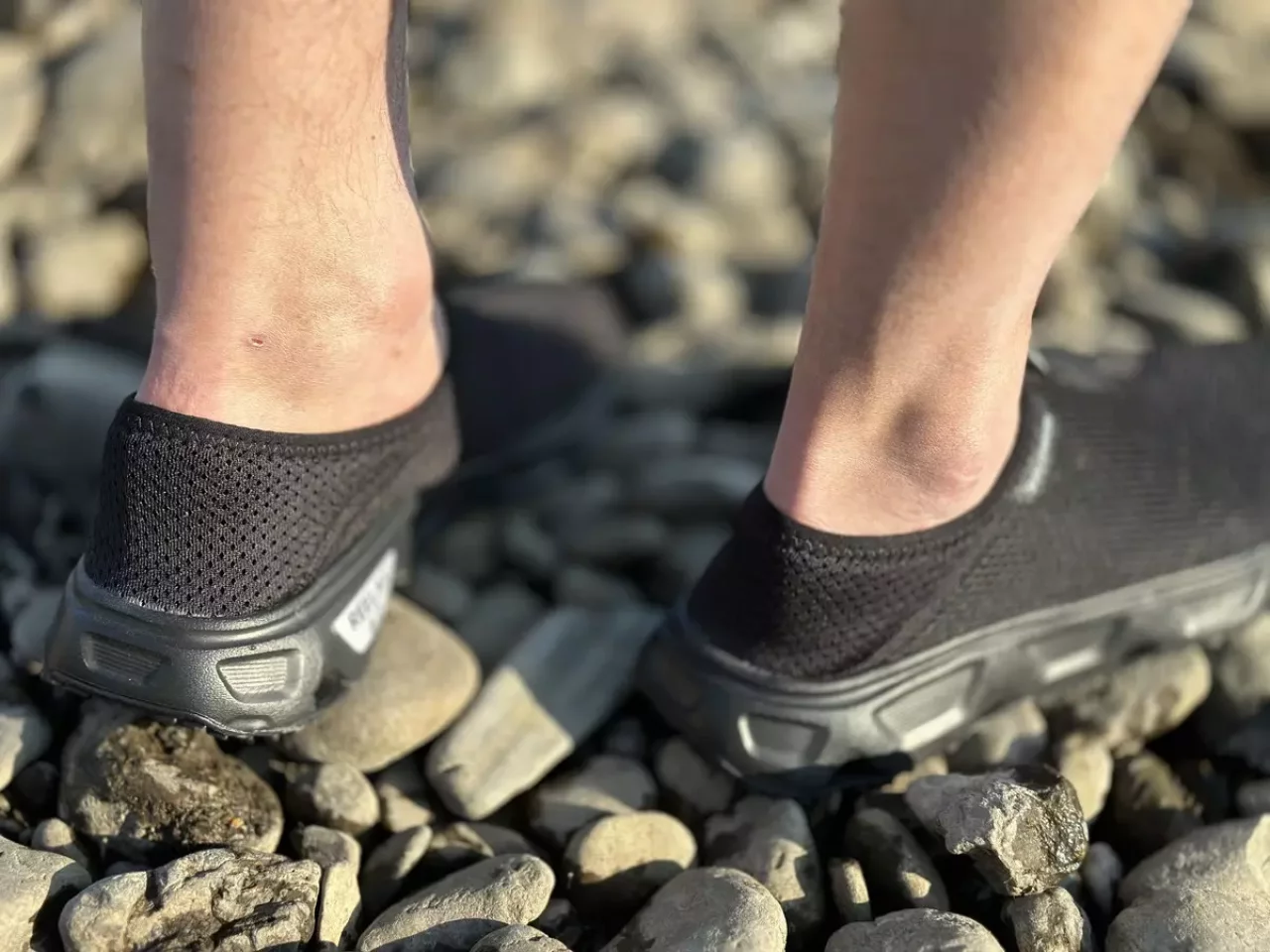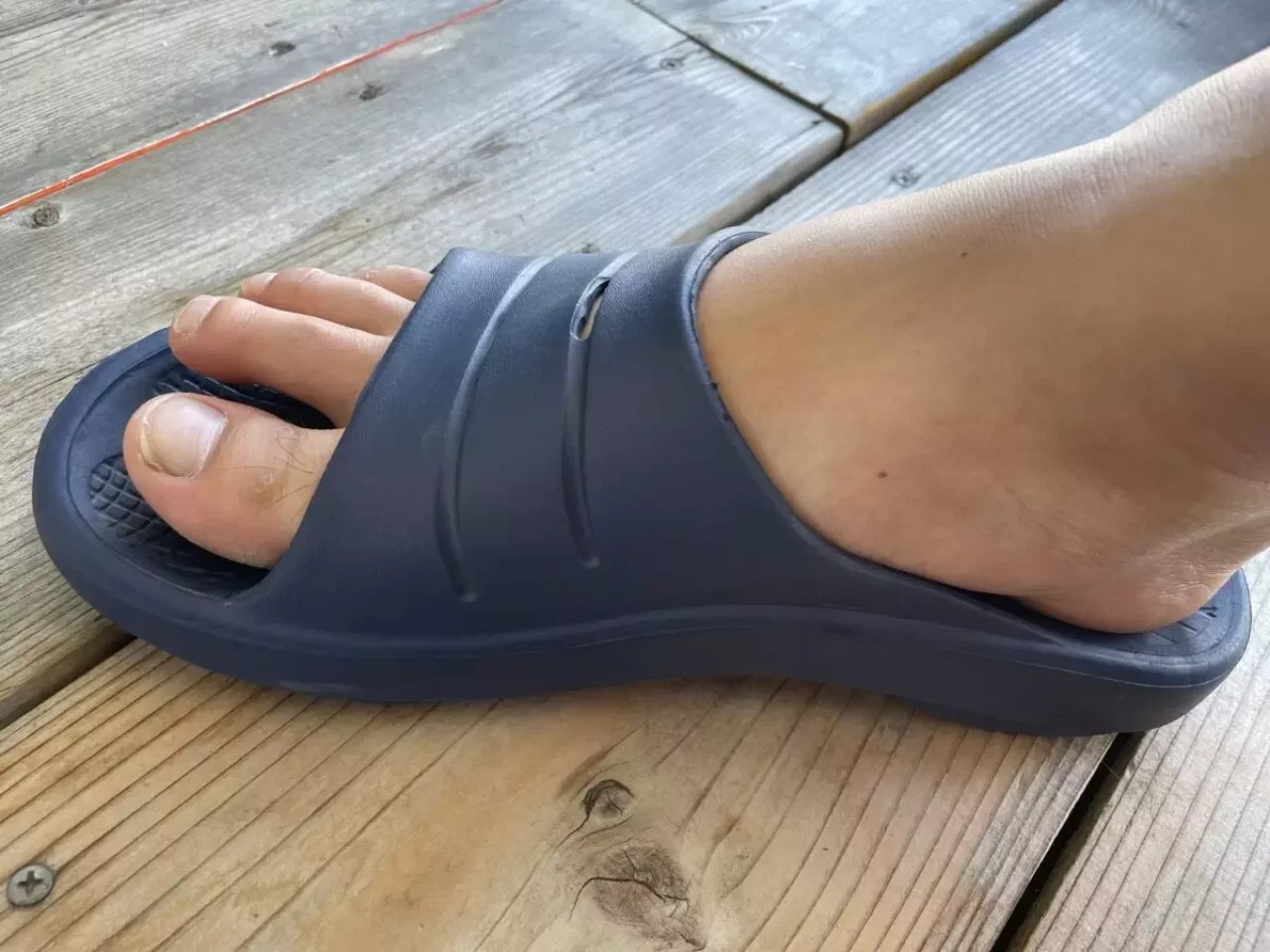 リカバリーサンダルは通常のサンダルやスニーカーよりも優れた衝撃吸収性能を持つクッション性の高いソールを採用しています。だから歩いた時に地面から足に伝わる衝撃を抑えて足への負担を軽減します。運動後に生じた筋肉の張りや痛みを和らげる効果があり、足の裏だけでなく足首や膝などの関節への衝撃も和らげてくれます。
