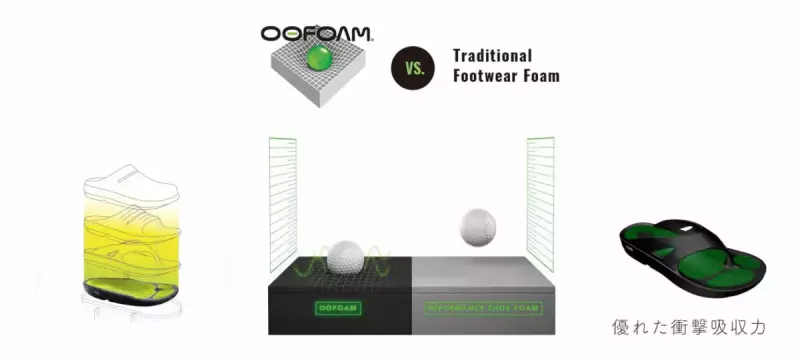 ウーフォスは2011年にアメリカで誕生したメーカーです。スポーツ選手やトレーナー向けに開発されたリカバリーシューズブランドで、高い効果と優れたデザインで多くのファンを集めています。リカバリーサンダルのパイオニアとして生まれたウーフォスが採用しているOOfoam(ウーフォーム)は従来のフットウェアの構造と異なり37%もの衝撃を吸収し、体にかかる衝撃をソール上に分散し高い回復効果を生み出します。上の画像はゴルフボールを落下した場合に衝撃を吸収するフォームを採用していることを表したイメージです。