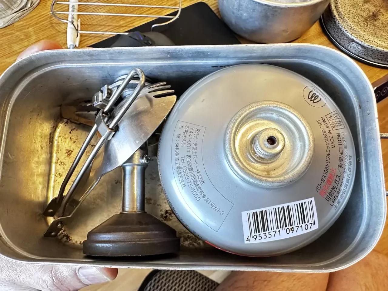 - ガス缶を裏返して収納することで蓋が閉まることがあるので試して見ましょう