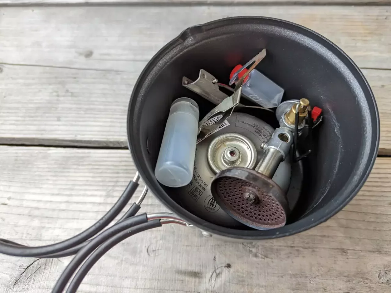 アイデア2:深型クッカーでガス缶とガスバーナーをスタッキング収納