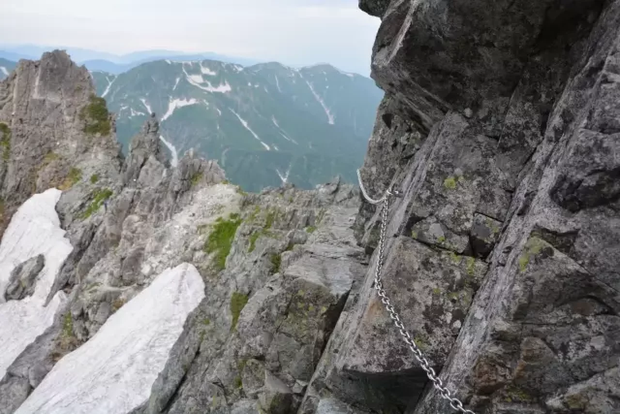 一般登山道国内として国内最上級の難易度です。危険な場所が多く少しのミスが重大事故につながる可能性が高いため、登るには十分な技術、体力、経験、準備が必要です。また、単独登山は救助要請ができないリスクが大きいので、パーティ行動が良いでしょう。岩登りの技術は必須です。