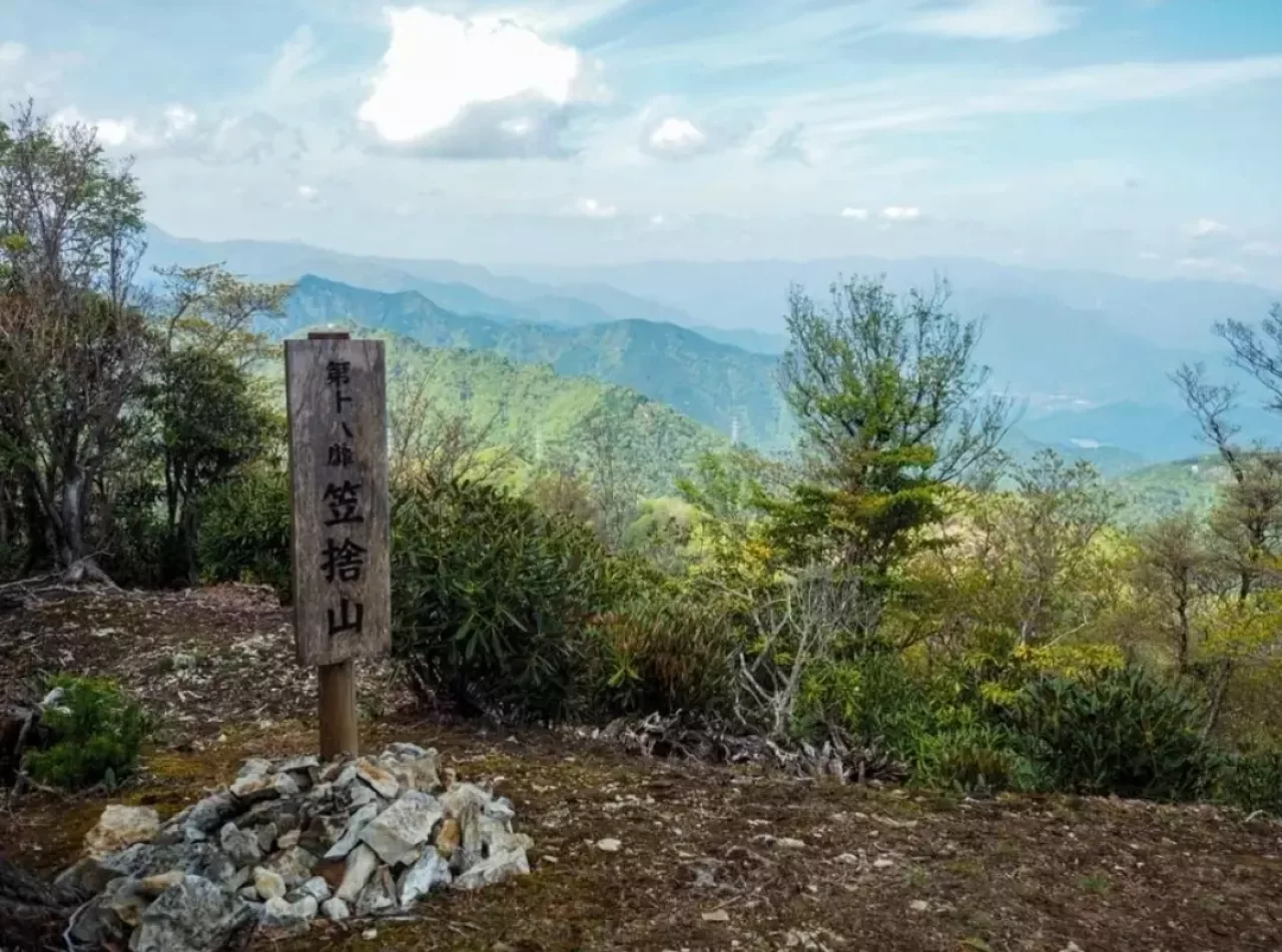 笠捨山山頂です。第十八靡です。ここからは激下りの後、南奥駈最大の難所である地蔵岳へ向かいます。