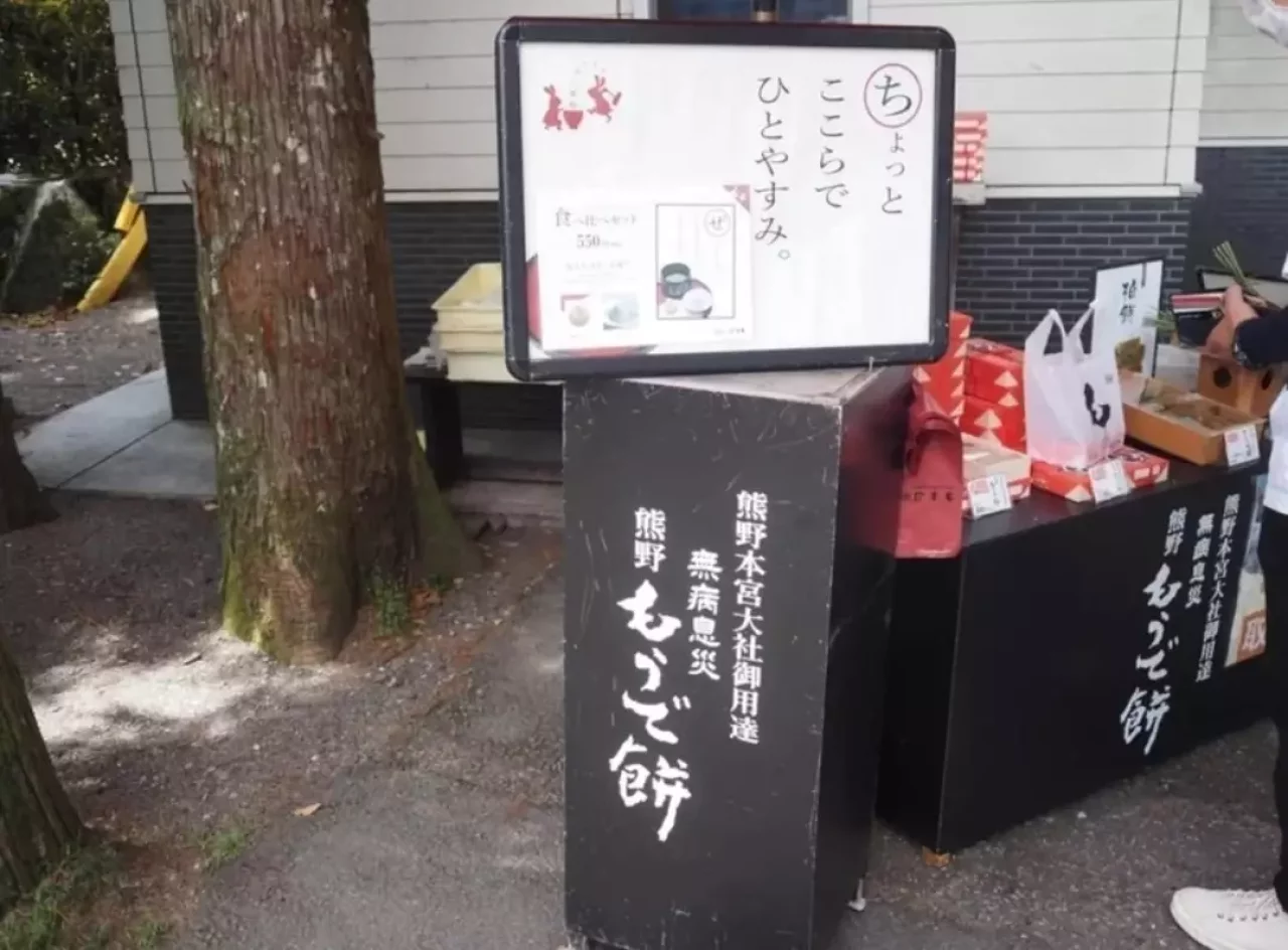 お土産は熊野本宮大社御用達の「もうで餅」です。熊野本宮大社の鳥居前で売っています。