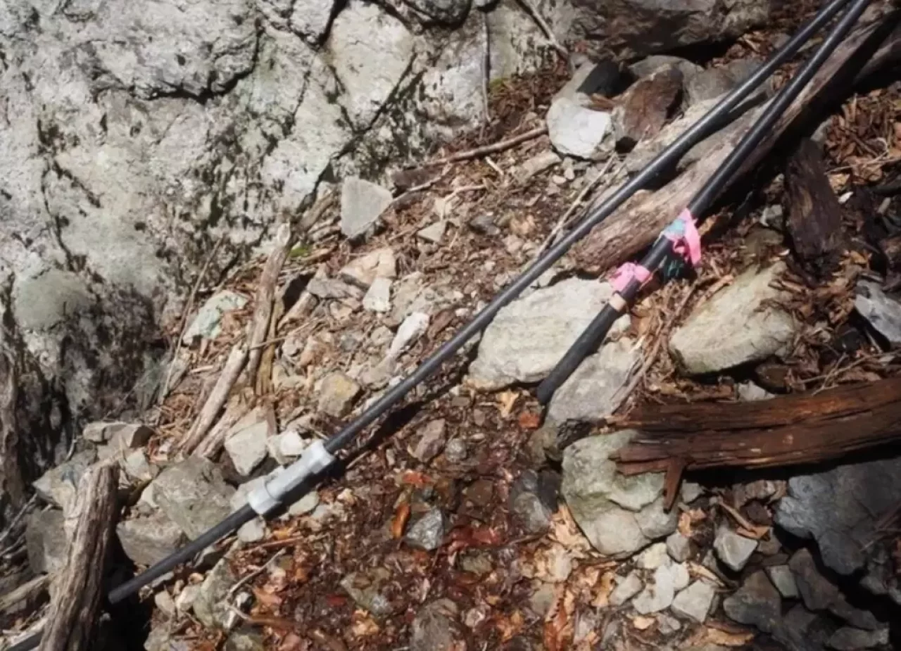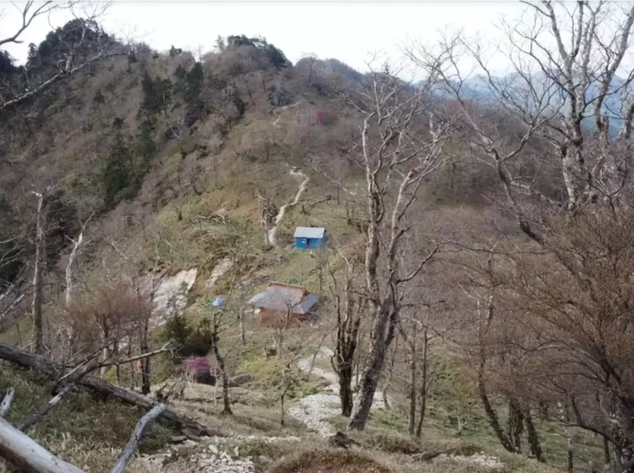 小屋の前に汲み置き水が並べられていました。ありがたいです。500補給させてもらいました。水場は400mほど下ったところにあります。