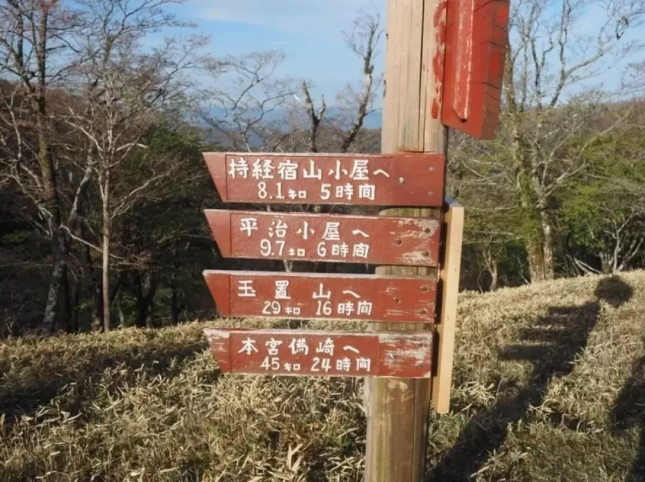 玉置山まで29キロ、熊野本宮大社まで45キロと記されています。水場事情も困難になってきますので、しっかり計画して歩きましょう。