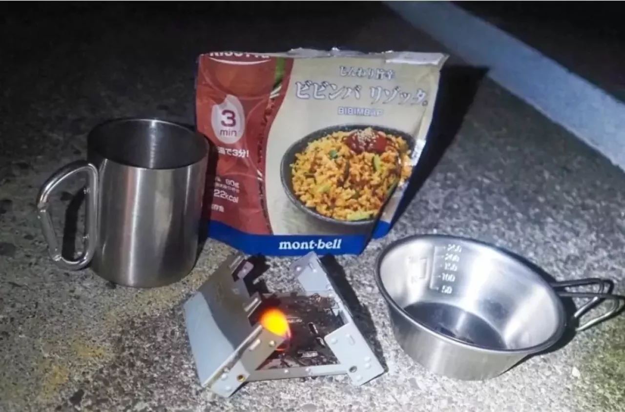 朝食はmont-bellのリゾッタとスープです。火器は固形燃料と台だけ。クッカーはシェラカップのみ。お湯沸かすだけの食材しか持ってきていません。