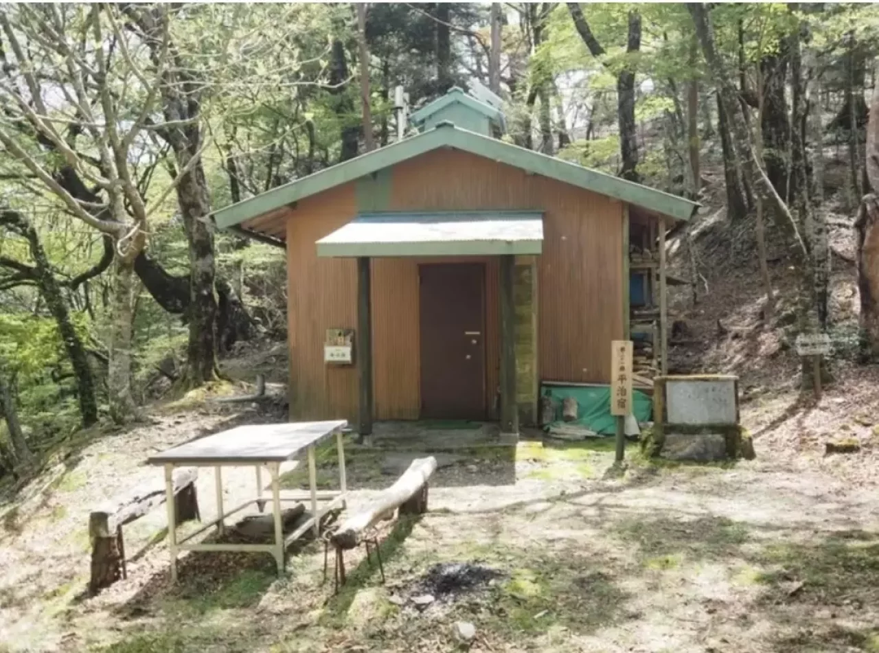 持経から50分ほど歩くと平治ノ宿です。こちらも新宮山彦ぐるーぷさんの小屋で綺麗で広いです。3つの中で一番空いてます。宿泊予約可、有料です。