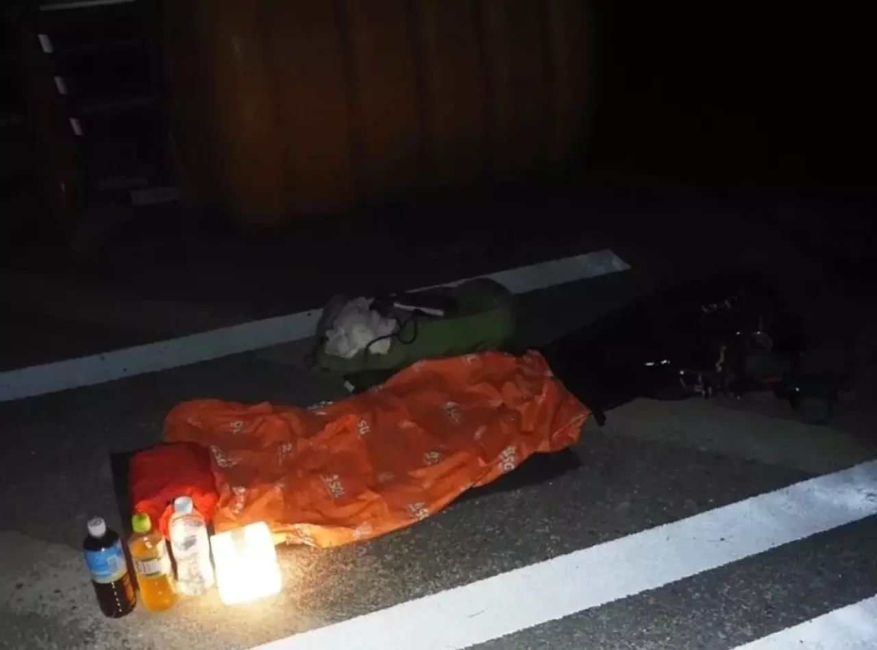 この日の寝床です。パッキングし直した際にツェルトを忘れるというミスをしてしまいました。反省です。ULマット、エスケープヴィヴィ、上半身はダウン+レインを着込んで、下半身はザックに足を入れて寝ました。熟睡出来ました。もし雨予報なら1.8キロ手前の展望台まで戻れば、この装備でも屋根の下で寝ることが出来ます。